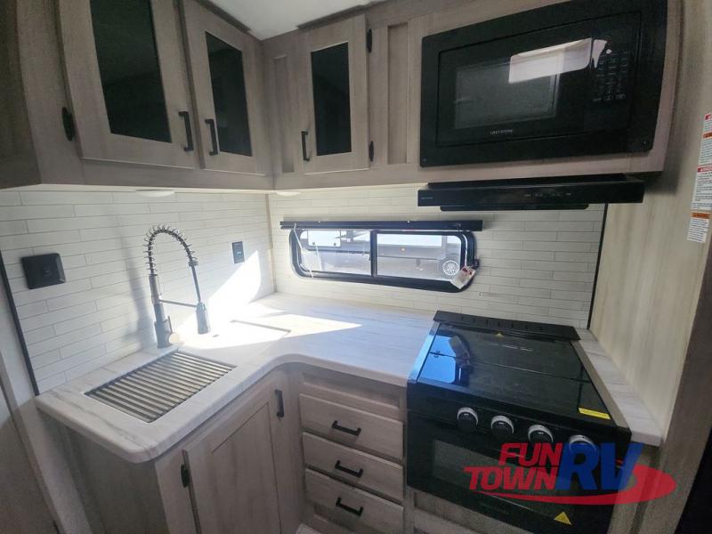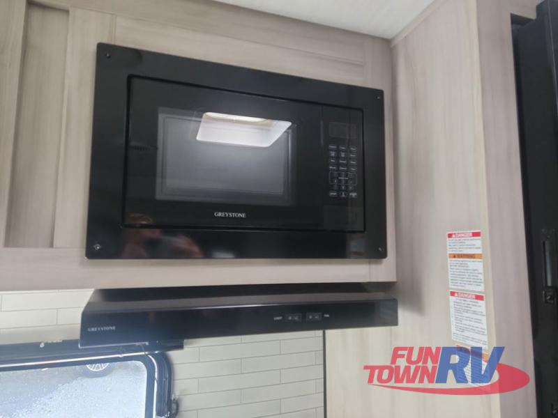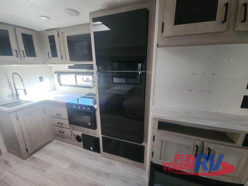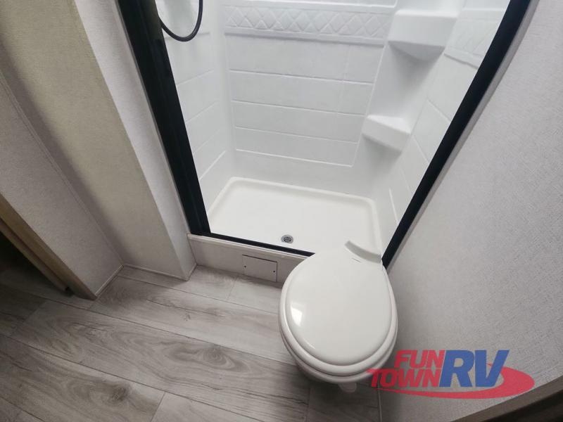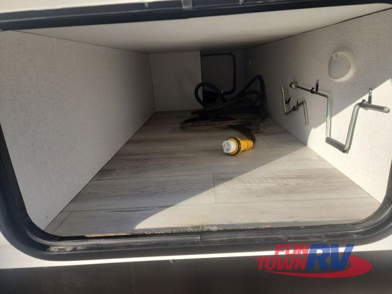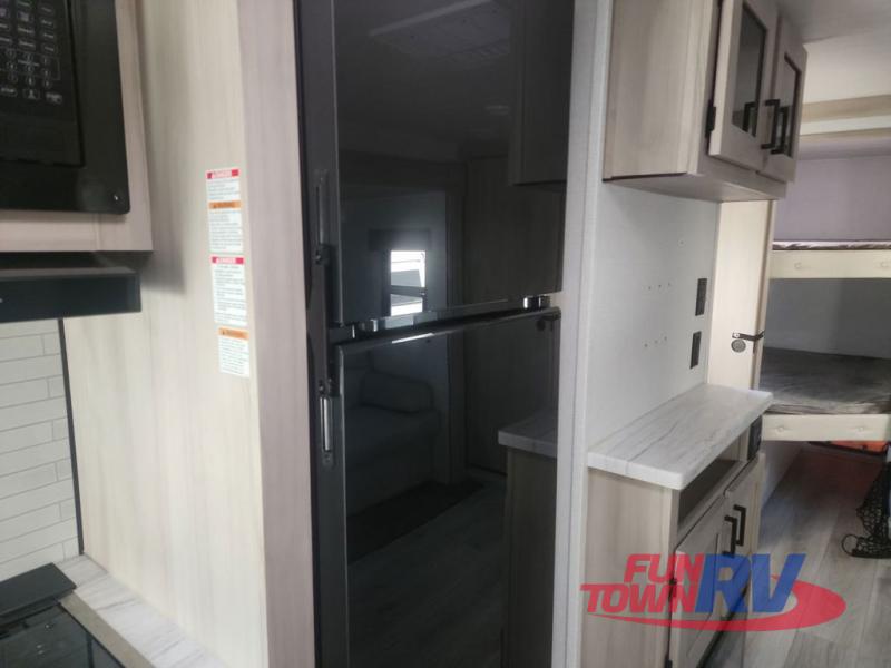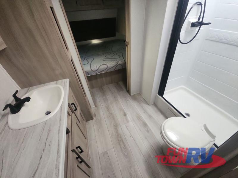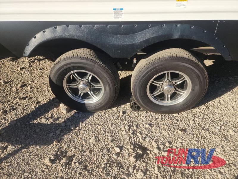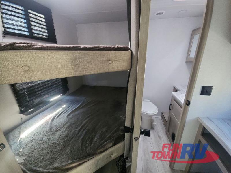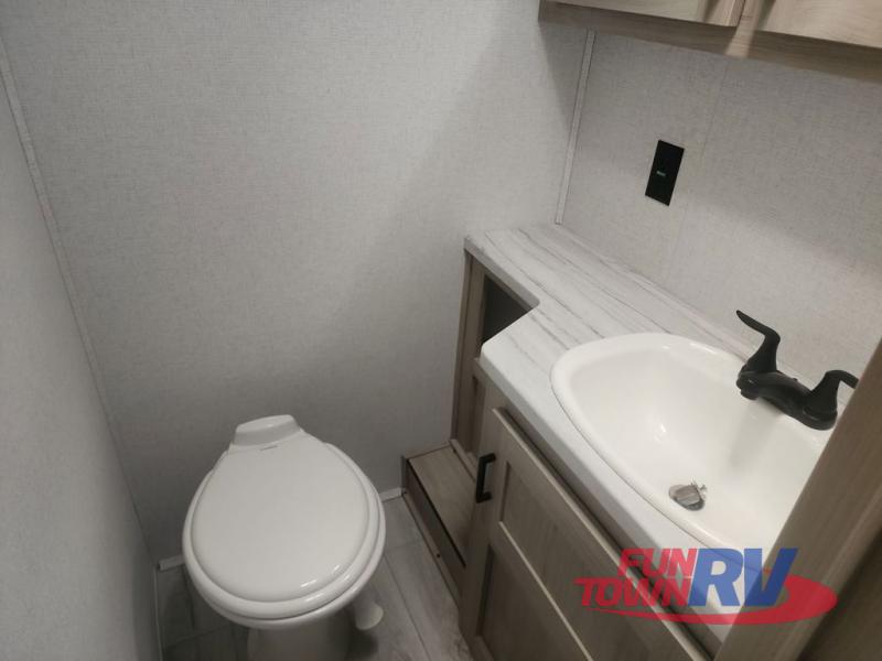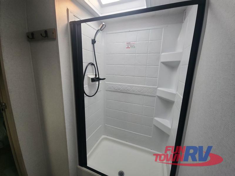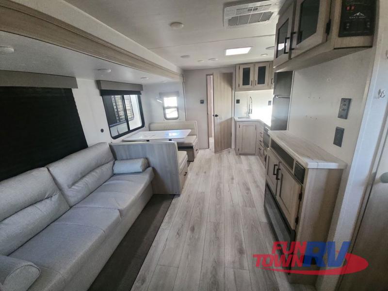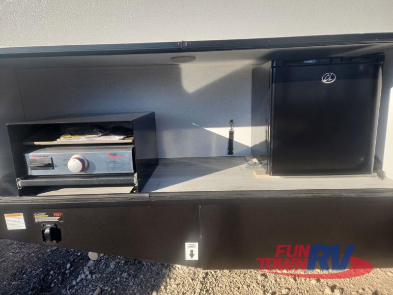 Load up the family, clothes, gear and food, and head out for a fun long-weekend at your local state park! As you easily load through the dual entry doors, you will find lots of storage throughout in the dual wardrobes in the private bedroom and bunkroom, underneath the booth dinette, within the overhead cabinets, plus the exterior pass-through storage allows you to bring along larger items and outdoor games and gear. You will sleep like a royalty in your private bedroom up front while the rest of the family enjoys the double-size bunks, a jack knife sofa, and even the dinette once easily setup for nighttime. You'll enjoy several more conveniences such as a full and half bath, a fireplace underneath the entertainment center, and loads of storage both inside and out.