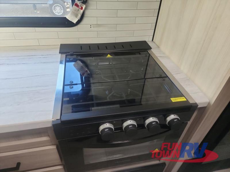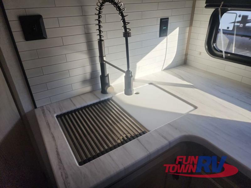 Each Della Terra travel trailer by EAST TO WEST is constructed with an enclosed and heated underbelly and enclosed holding tanks so you can camp all year long. There is also a power tongue jack with an LED light for easy set up and a power awning with LED lights you can rest under after you've unpacked. The Explore Comfort Package comes with marine grade woven PVC flooring in the slide outs with no carpet, an 81" interior ceiling height, upgraded Congoleum designer linoleum flooring, and many more comforts.