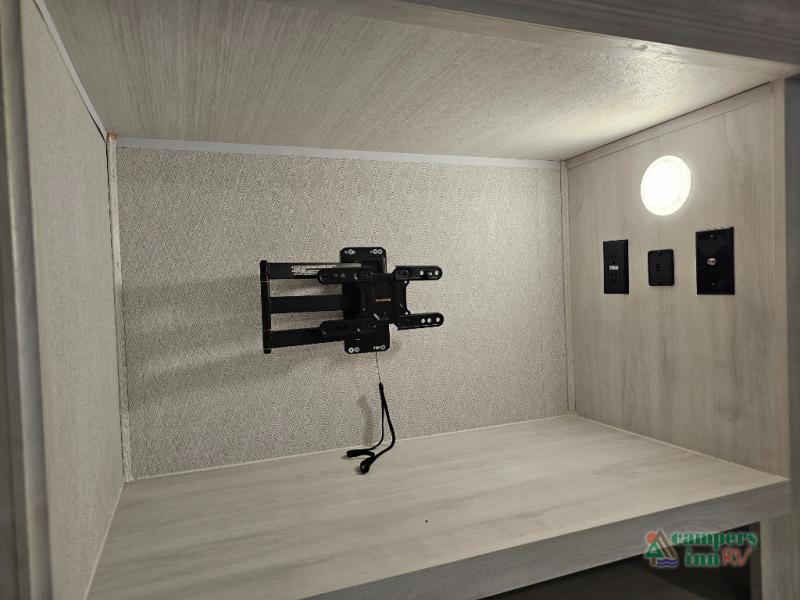 Prep area for an optional bedroom TV to enhance relaxation on the road.