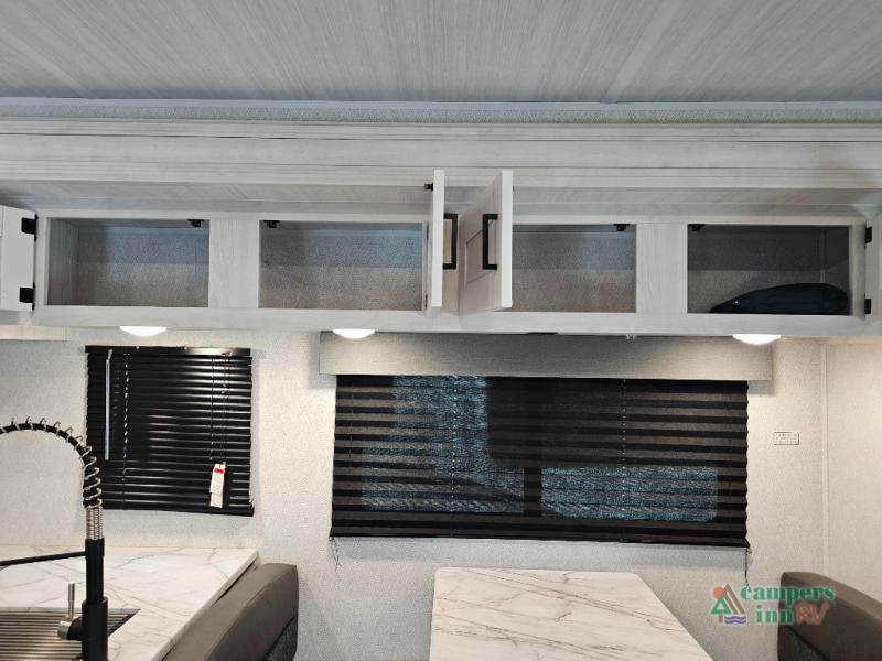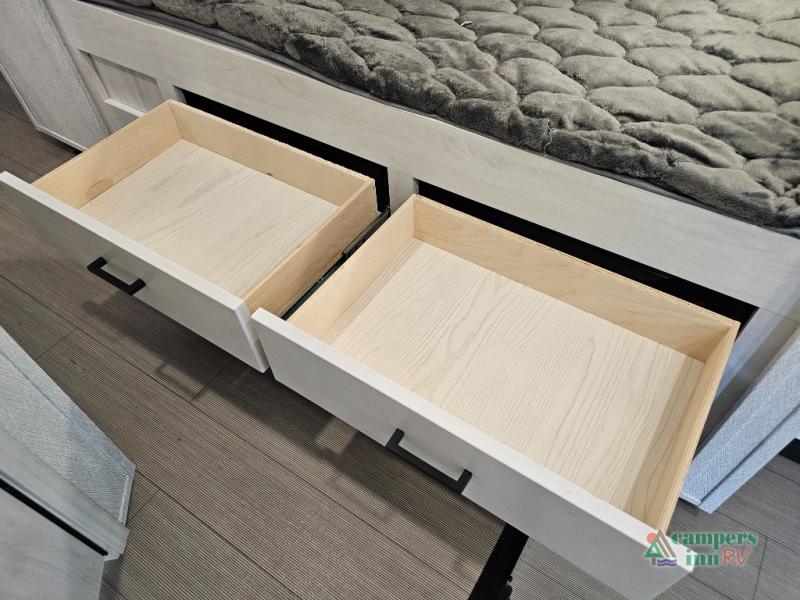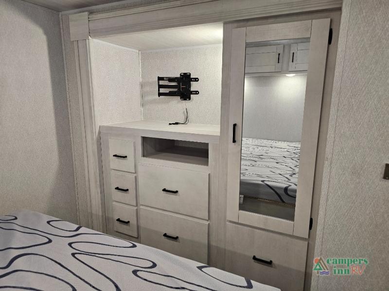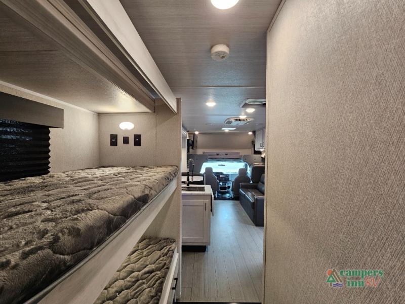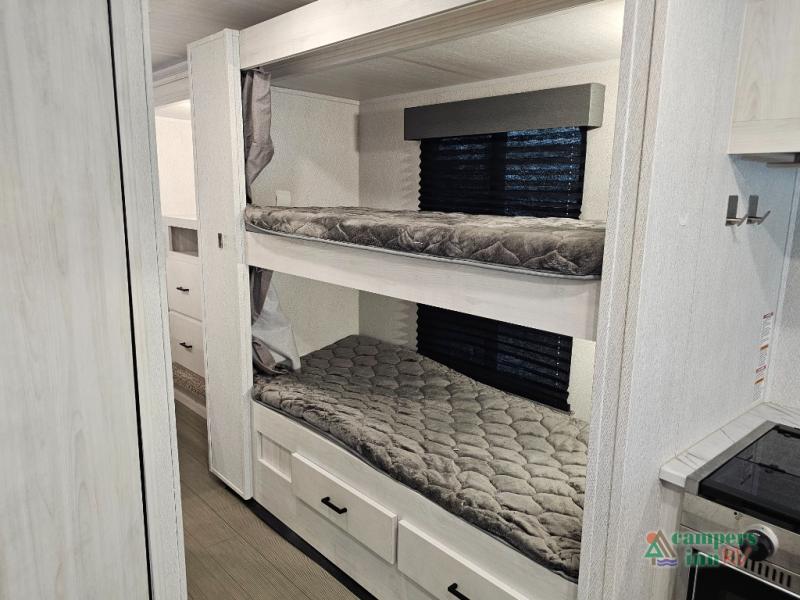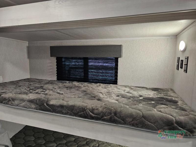 Bunk beds on the slideout for kids, guests, or extra storage versatility.