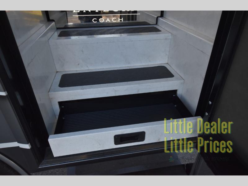 • State-of-the-Art Technology – Multiple LED TVs, Blu-ray player, Entegra VegaTouch® control system, solar prep, and lithium battery-ready for off-grid adventures.