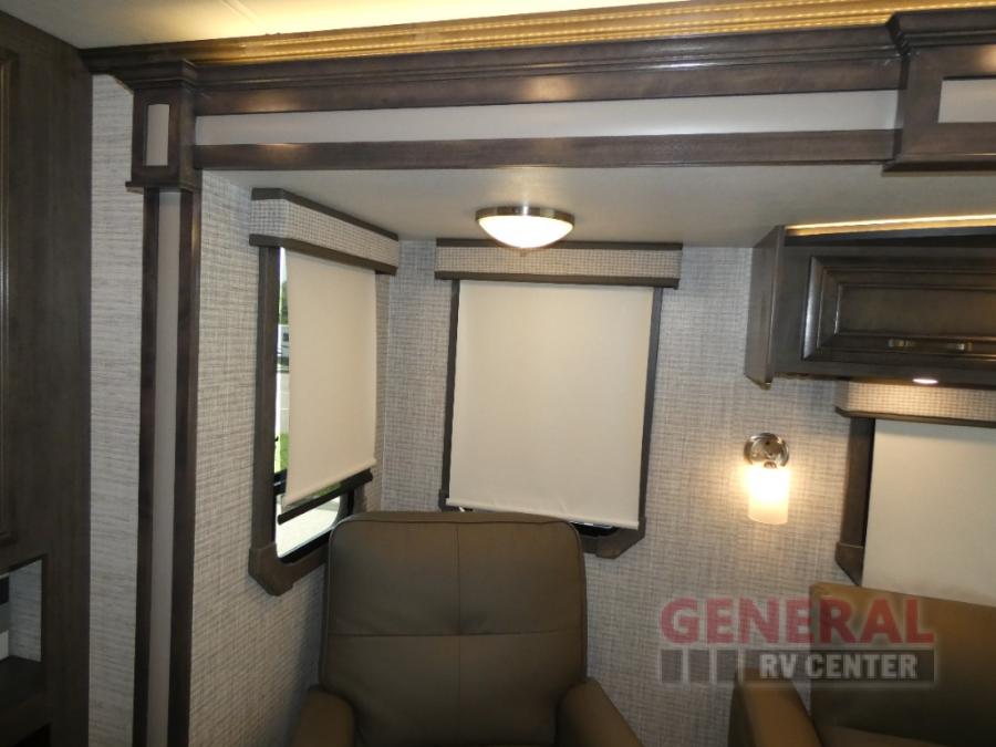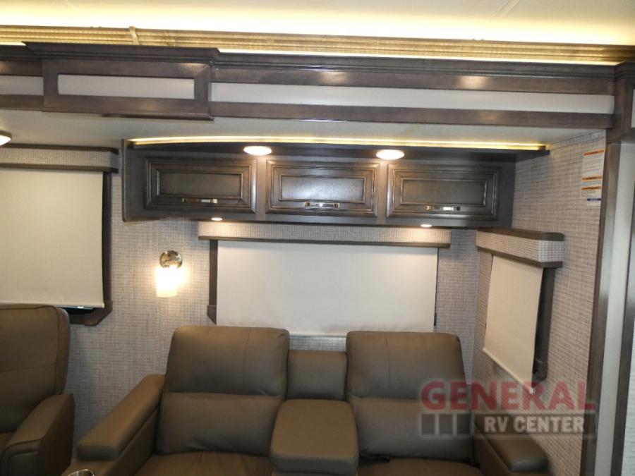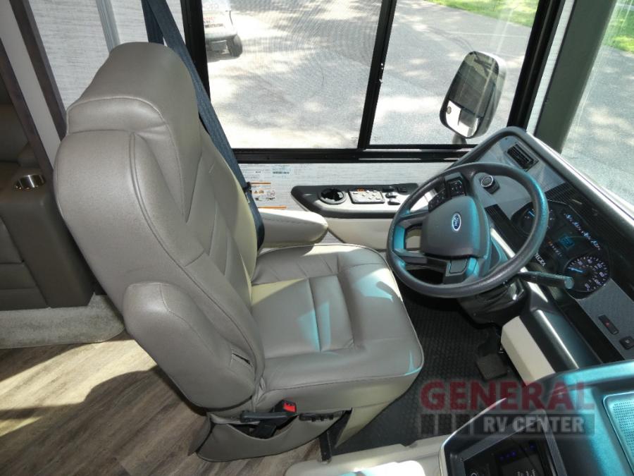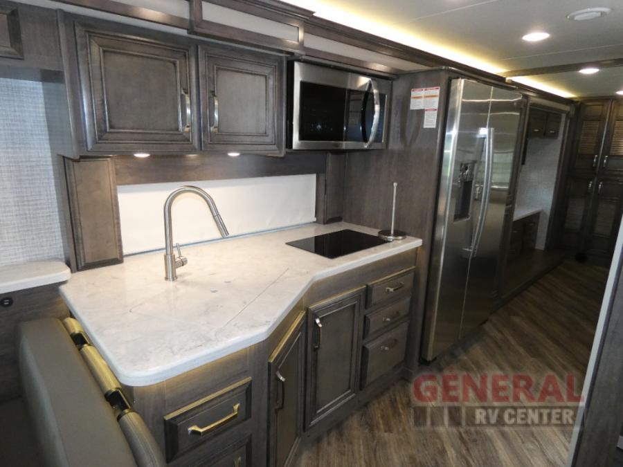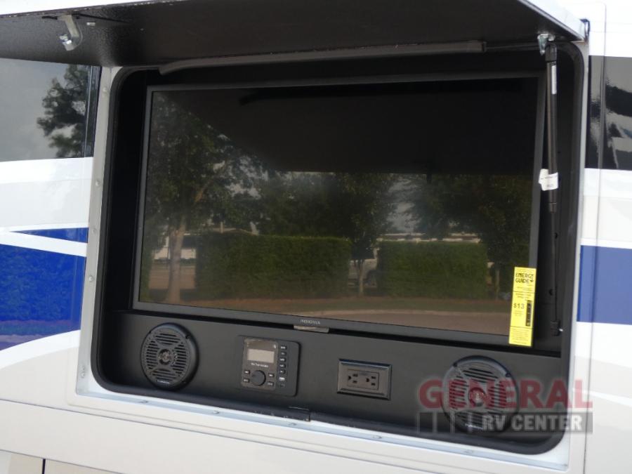 With any Emblem Class A gas motorhome by Entegra Coach, the standard E-Z Drive Elite package offers a blend of ride and handling features keeping the drive quiet and comfortable, while the TuffShell vacuum-bonded laminated construction offers a strong and durable coach for years of enjoyment. The 120-in. panoramic windshield provides great views and is the largest in the industry. The standard 200W solar panel with a dual controller will monitor and charge your house and chassis' batteries simultaneously reducing the cost and load of electrical use in the coach. The interior will impress you with the Firefly Multiplex system, high-intensity recessed LED ceiling lights, vinyl plank flooring, hardwood cabinet doors and drawers with deluxe hidden cabinet hinges, and more! Make your best decision yet, choose an Emblem today!
