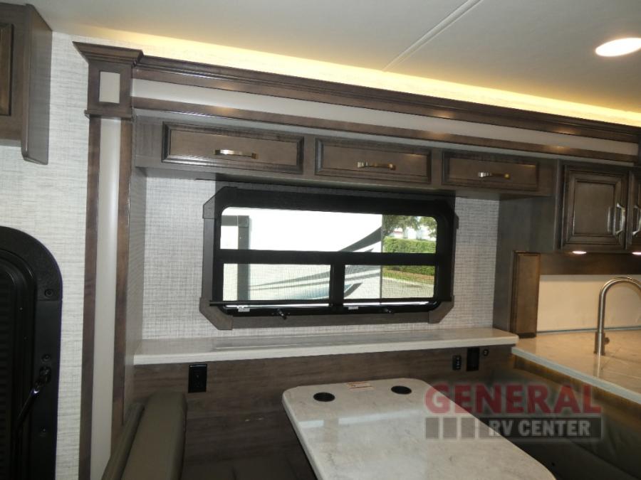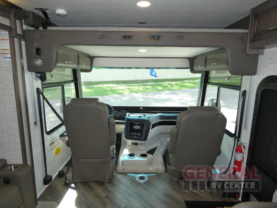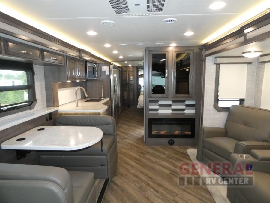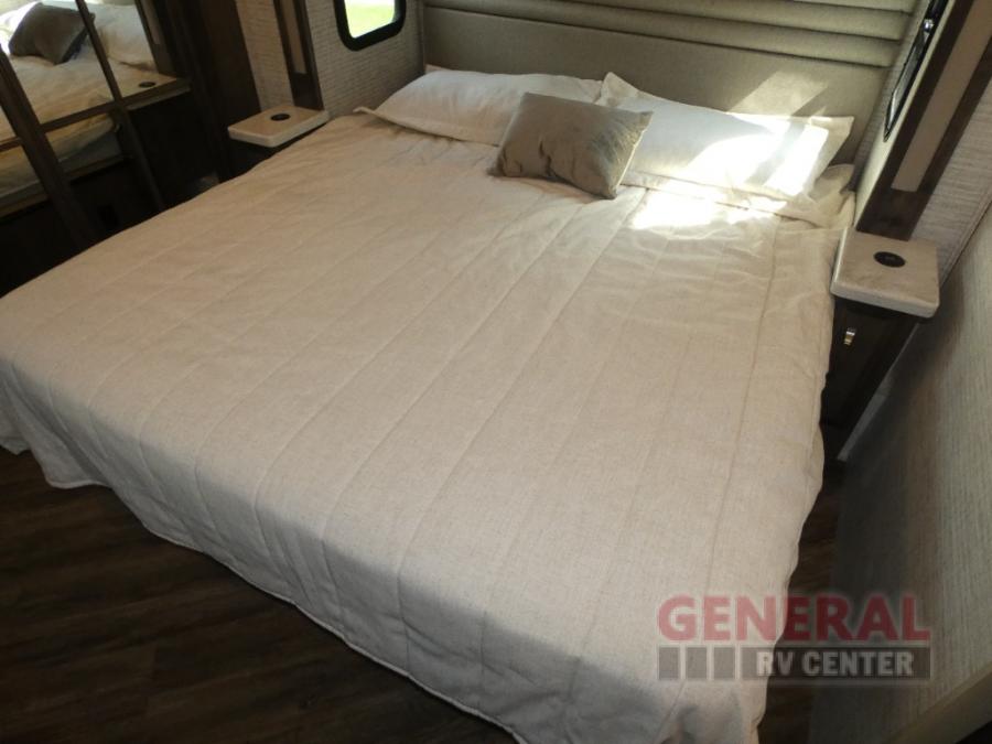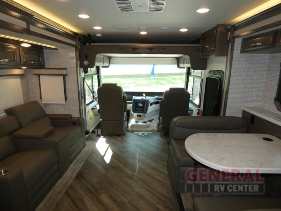 With any Emblem Class A gas motorhome by Entegra Coach, the standard E-Z Drive Elite package offers a blend of ride and handling features keeping the drive quiet and comfortable, while the TuffShell vacuum-bonded laminated construction offers a strong and durable coach for years of enjoyment. The 120-in. panoramic windshield provides great views and is the largest in the industry. The standard 200W solar panel with a dual controller will monitor and charge your house and chassis' batteries simultaneously reducing the cost and load of electrical use in the coach. The interior will impress you with the Firefly Multiplex system, high-intensity recessed LED ceiling lights, vinyl plank flooring, hardwood cabinet doors and drawers with deluxe hidden cabinet hinges, and more! Make your best decision yet, choose an Emblem today!