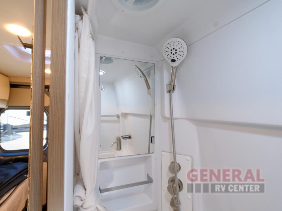 Enjoy day trips with friends or overnight stays at your favorite campground with your honey in this cozy motorhome. You will find swivel captain seats, plus two additional cab bucket seats for ride-along friends. The sofa in the back can convert to a 48" x 76" extended bed when you need a rest, and there is a TV to watch a movie. The kitchen is equipped with everything you need to prepare meals each day, including a stainless steel sink, a convection microwave, and a 5.3 AC/DC refrigerator for perishables. This model includes a convenient wet bath with a medicine cabinet with a mirror, a powered roof vent, plus an Aqua View Showermiser water management system you are sure to appreciate.