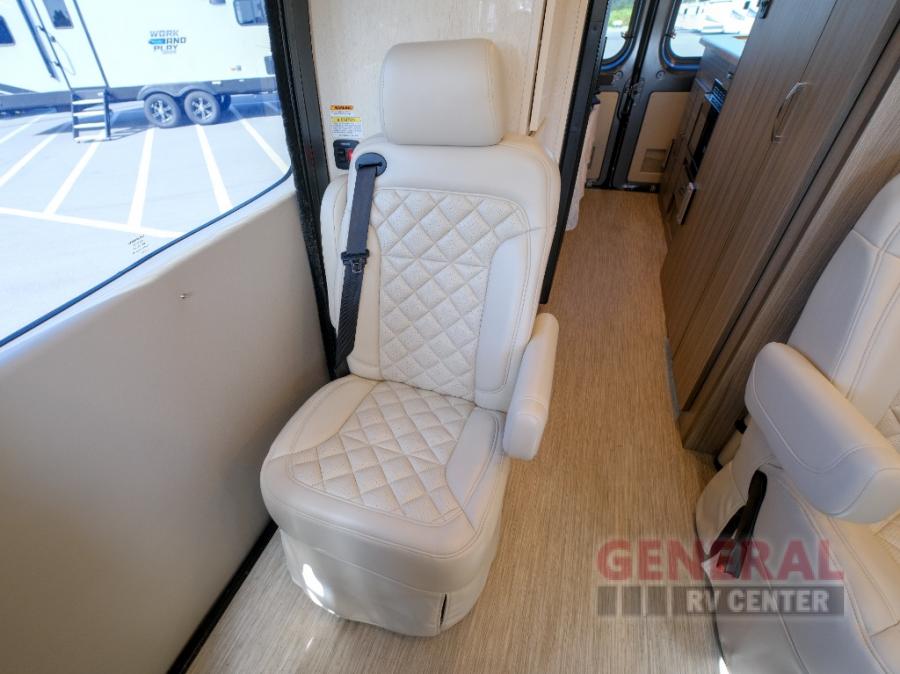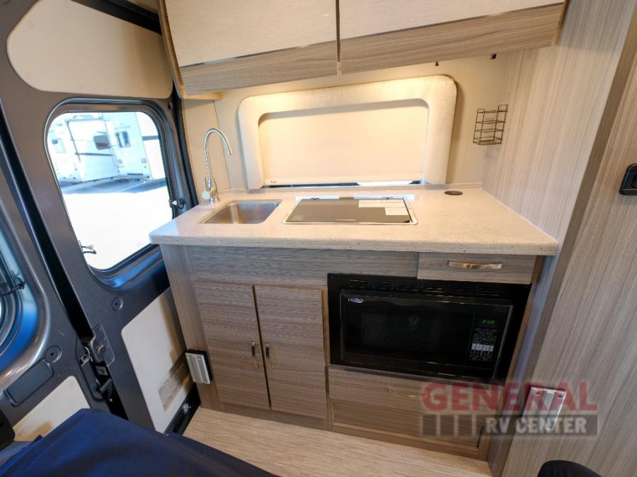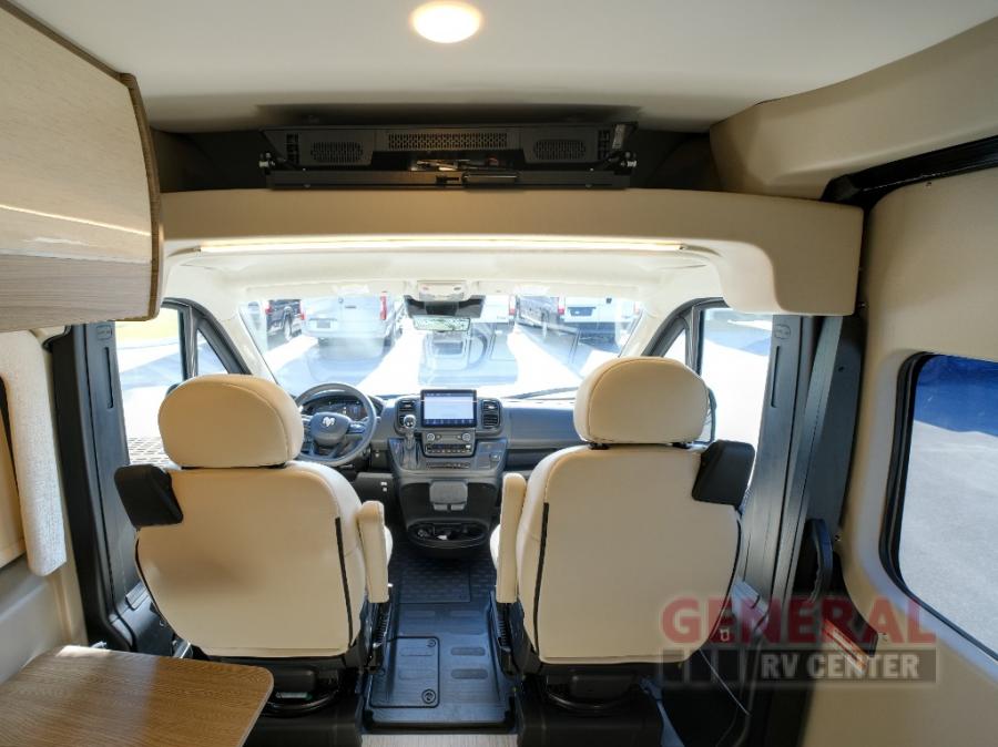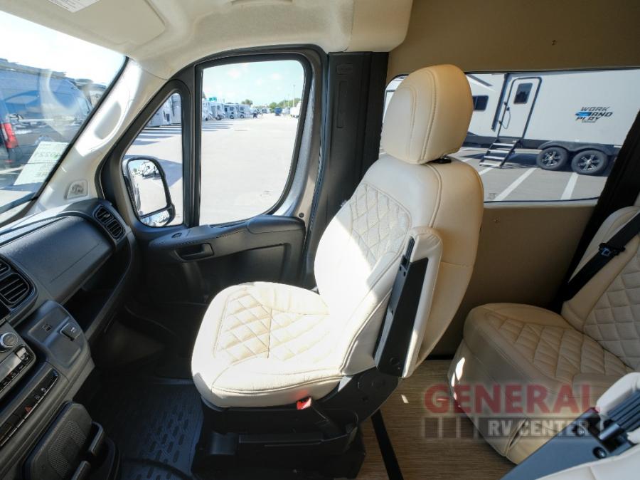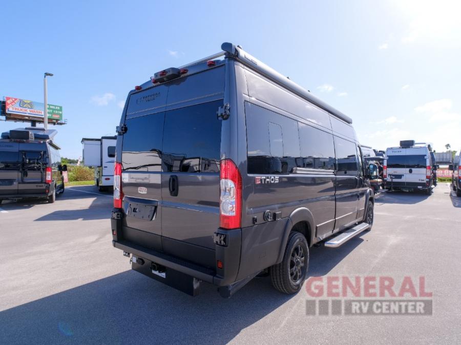 With any Ethos Class B gas motorhome by Entegra you will find helpful technology features, luxury amenities, and a smooth drive thanks to the E-Z Drive system. The 3.6L V6 24V VVT 276HP engine will power your trips near and far, plus there is an Onan 2800-watt gas generator on board and a 1,000-watt inverter. Put the 200W solar panel to use and you can do a little off-grid camping! Each model also includes a Truma Combi Eco Plus water heater and furnace, a 13,500 BTU A/C, a water filtration system, plus many more convenient systems. A 10" Uconnect infotainment center comes standard, along with a backup camera and a cab area privacy shade. You'll be traveling in luxury with residential vinyl flooring, Technoform European-style high-gloss cabinetry, a soft-touch vinyl celling, and solid surface countertops. Start a new adventure today in an Ethos Class B gas motorhome today!