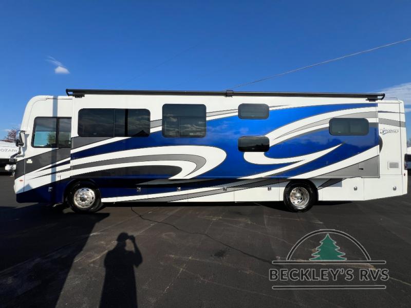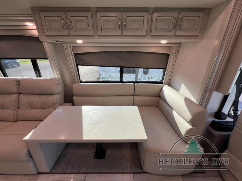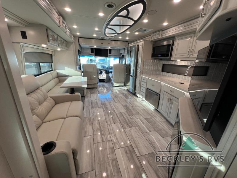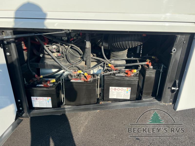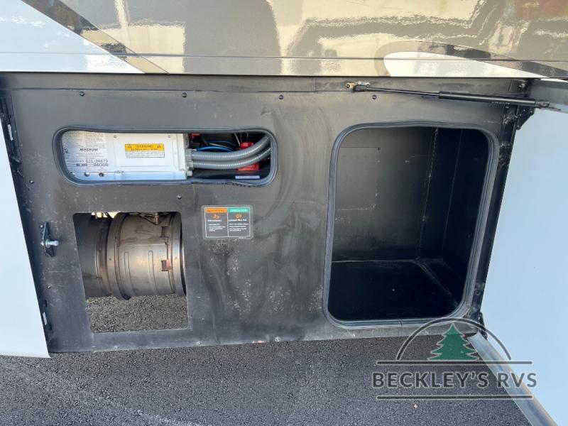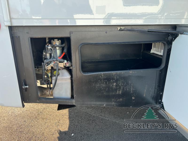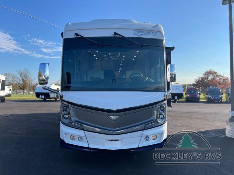 With any Fleetwood Discovery Class A diesel motorhome, the Freedom Bridge custom chassis, the V-Ride rear suspension, and the Cummins ISB turbocharged engine offer a smooth and enjoyable ride to all your destinations. The construction also includes the Powerlock System with interlocking floor, walls and roof, heated fresh water and holding tank compartments, and a full coverage heavy duty undercoating. The interior cabin includes an LED OptiView instrument panel, an air suspension deflation system, and a 10.2" stereo touch screen with lots of functions making traveling easier. And you will love the style of the interior decor and cabinetry, the energy efficient LED flush mount ceiling lighting, the polished solid surface galley countertop with lighting, the residential features throughout, and all the entertainment. Choose to travel and live better in a Discovery!