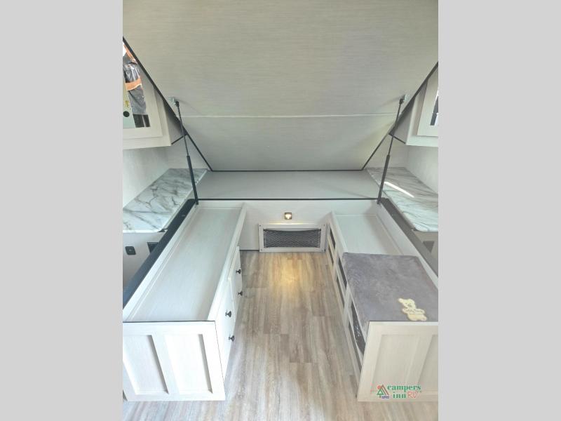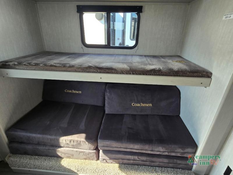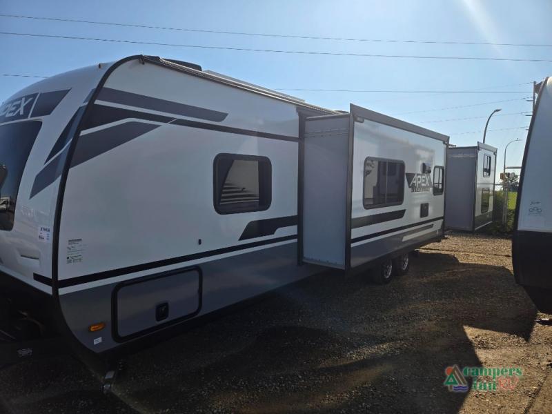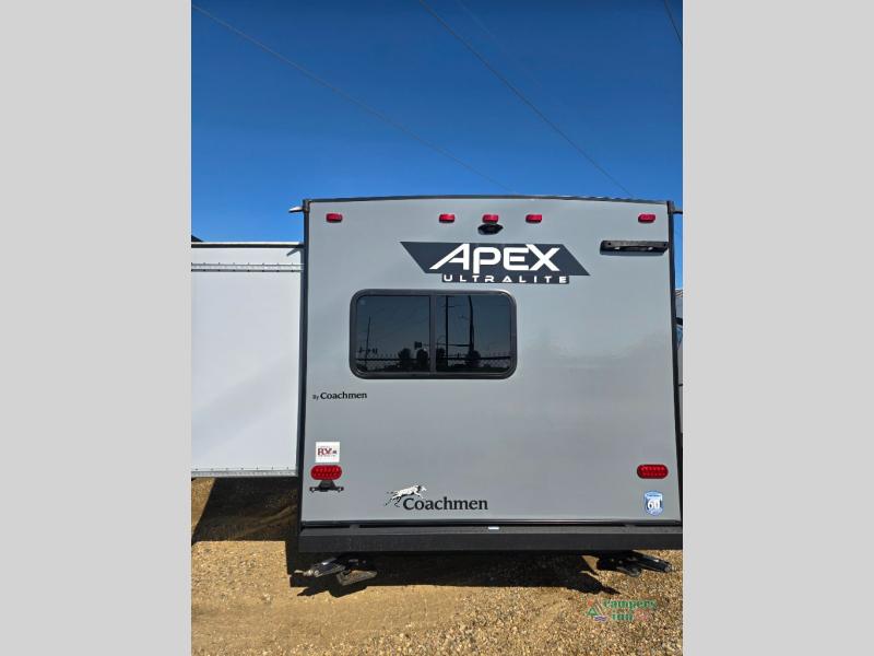 Lightweight living and camping is found with the Apex Ultra-Lite travel trailers by Coachmen. These eco-friendly units are made to last thanks to the Azdel composite sidewalls, the laminated aluminum floor, and the vacuum-bonded laminated crowned roof. Easy lube axles make towing easier than ever, plus there is a friction hinge entrance door, a 200-watt solar panel with a 30 Amp control charger, and slam latch baggage door catches for easy unloading. Some of the interior comforts you'll fall in love with are the one-piece seamless edge countertops, the hard valances with night shades, the matte black hardware, and the Casino Bisque cabinetry. The Apex Ultra-Lite trailers also include USB ports, a digital TV antenna with cable hook-ups and Wi-Fi capability, and a 13.5K BTU A/C to keep you comfortable all summer long!