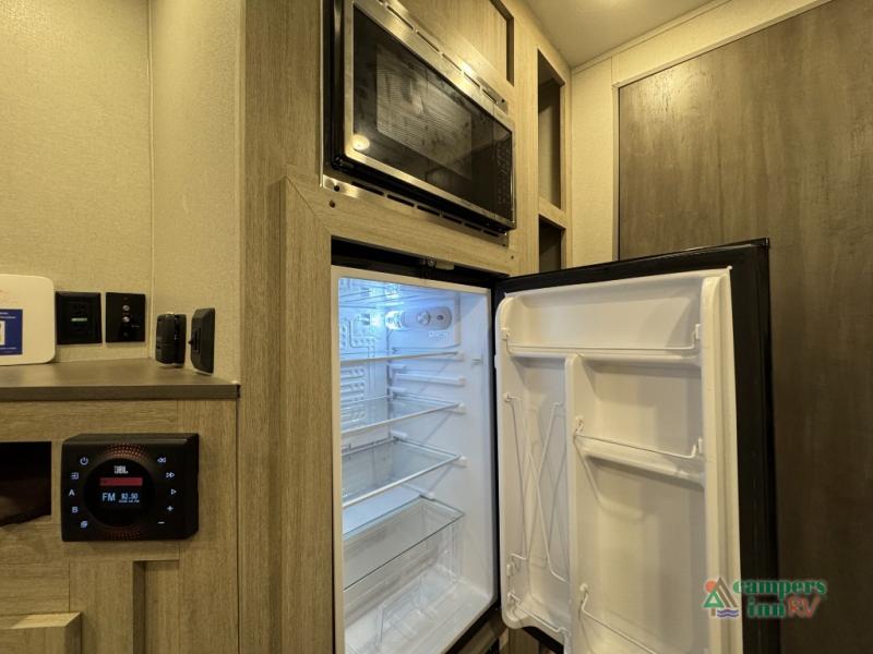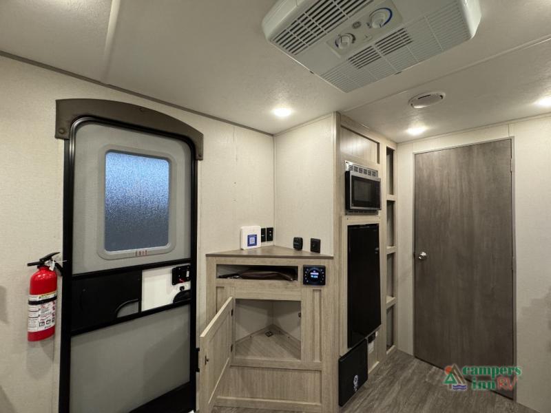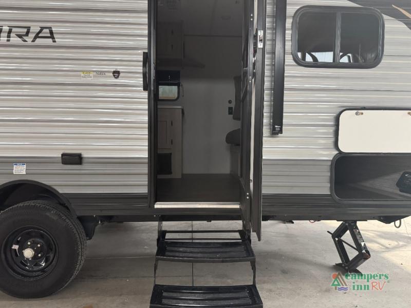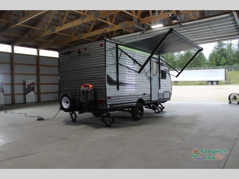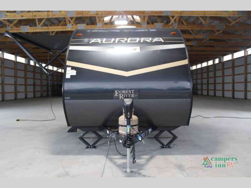 Comfortability, usability, and quality is what you will find in each one of these Forest River Aurora travel trailers or toy haulers! They are designed with a superior build and packed full with industry leading, functional, and distinctive standard features. SolidStep entrance steps and an XL swing arm grab handle help you to safely enter and exit the unit. The diamond plate rock guard will protect your unit from road debris and the nitrogen filled radial tires, which keep their pressure longer, offering better fuel economy. You will also find upgraded JBL Elite exterior speakers outside, a Carefree awning with multicolor lights and remote, plus flush mount baggage doors for easy packing. The interiors are beautifully designed with stainless steel appliances, and linoleum flooring throughout which will be easy to clean. Come find your favorite model today!