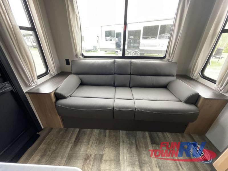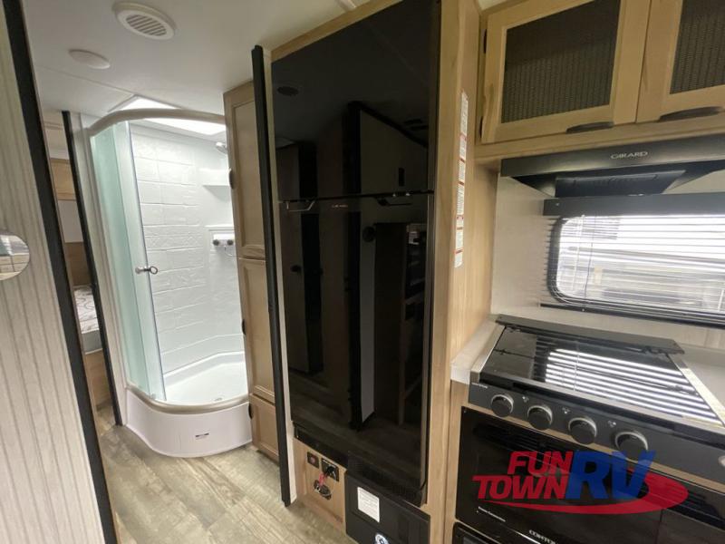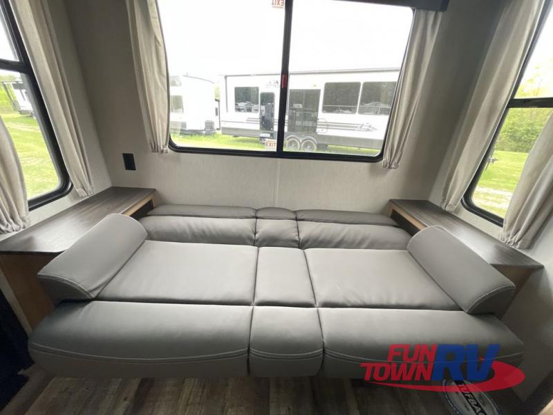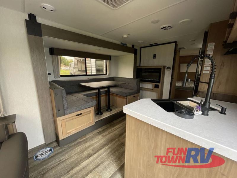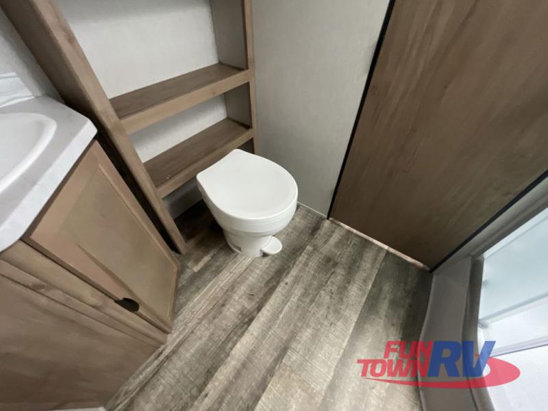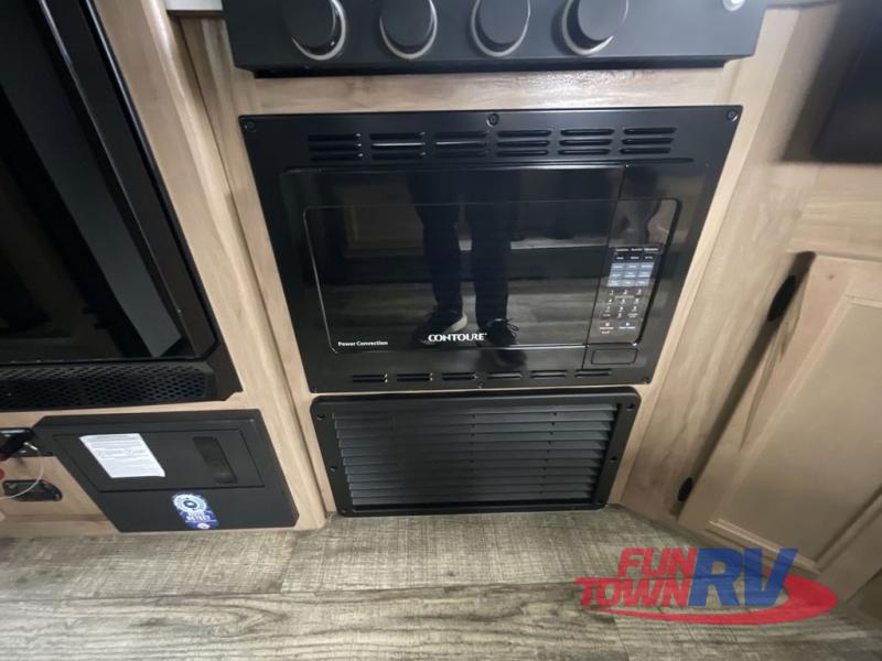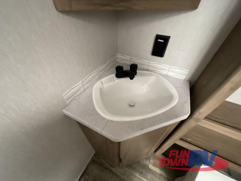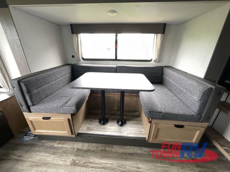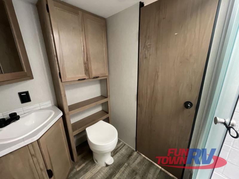 This Cherokee Grey Wolf travel trailer is perfect for your small family and will leave you planning your next outing before you are back from your current weekend away! You will find all of the comforts you need with plenty of livable space including a U-shaped dinette slide. There is also a sofa for more seating when company arrives, and there are end tables on either side to prevent spills. A spacious walk-through bath leads to a front private bedroom where you will enjoy a great night's rest on a comfortable queen-size bed. You will find ample storage for clothing in the wardrobes that are above handy nightstands for your personal things. There are even lights mounted above the bed on each side which makes it easy to read a couple of chapters before drifting off to sleep.