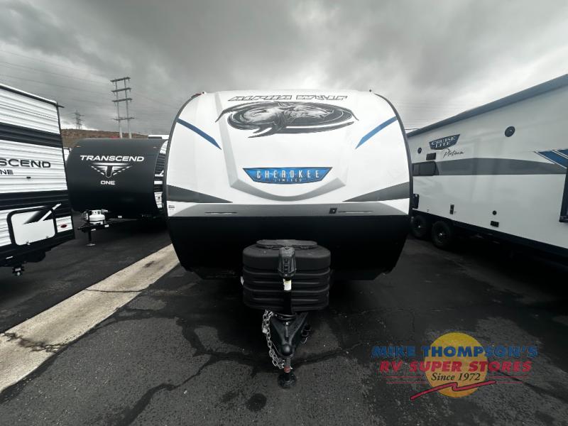 With any Cherokee Alpha Wolf travel trailer by Forest River you'll enjoy outstanding amenities, quality construction, and an affordable price. Each model features a "ToughBend" rigid skirt metal design, 5/8" tongue and groove plywood floor decking, and a "SuperTruss" roof structure that will hold up through years of camping memories. There is a "blackout" kitchen appliance package indoors, along with an LED interior lighting package, a 15,000 BTU quick cool central air conditioning, and many more comforts. These travel trailers include a utility center convenience light so you can easily check tank levels, and the outdoor TV prep means you can bring along your television for the big game. The Limited Package, Weather Guard Package, and Convenience Package include additional features found on select models, and there available options that can be added to further customize your Cherokee Alpha Wolf!