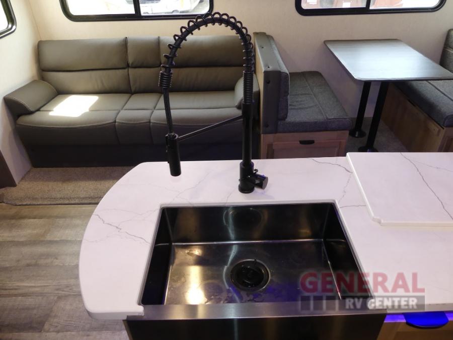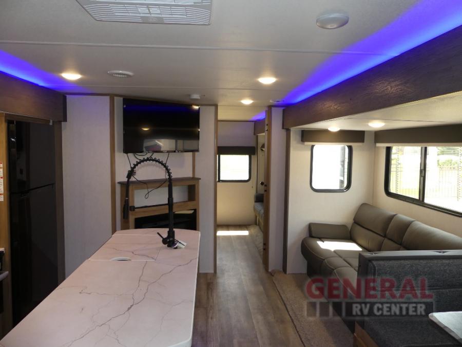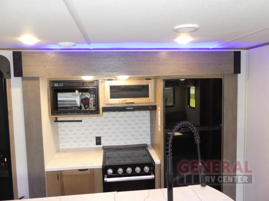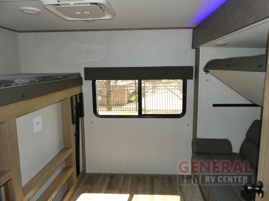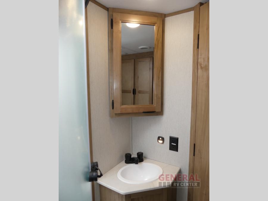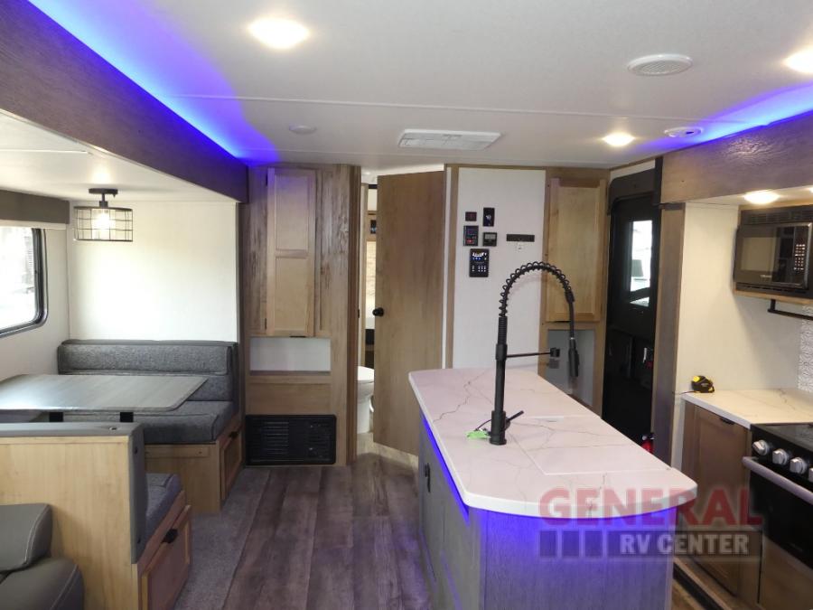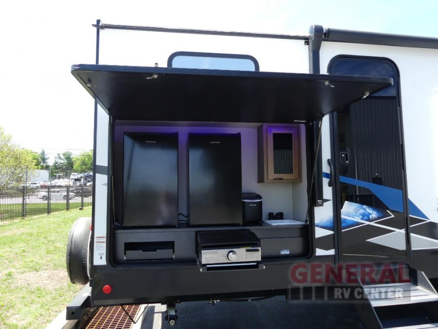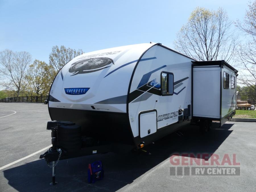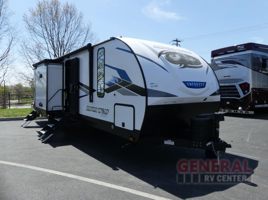 With any Cherokee Alpha Wolf travel trailer by Forest River you'll enjoy outstanding amenities, quality construction, and an affordable price. Each model features a "ToughBend" rigid skirt metal design, 5/8" tongue and groove plywood floor decking, and a "SuperTruss" roof structure that will hold up through years of camping memories. There is a "blackout" kitchen appliance package indoors, along with an LED interior lighting package, a 15,000 BTU quick cool central air conditioning, and many more comforts. These travel trailers include a utility center convenience light so you can easily check tank levels, and the outdoor TV prep means you can bring along your television for the big game.