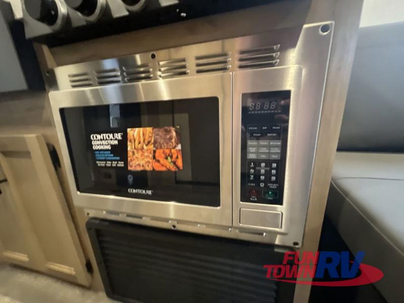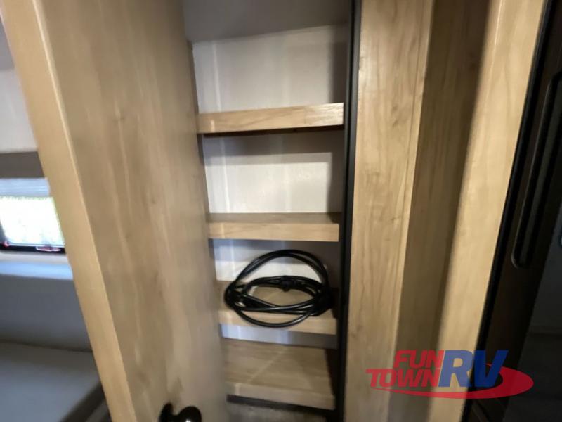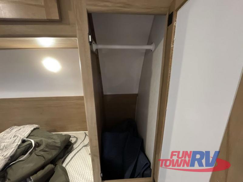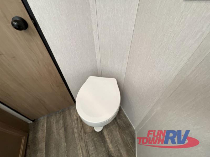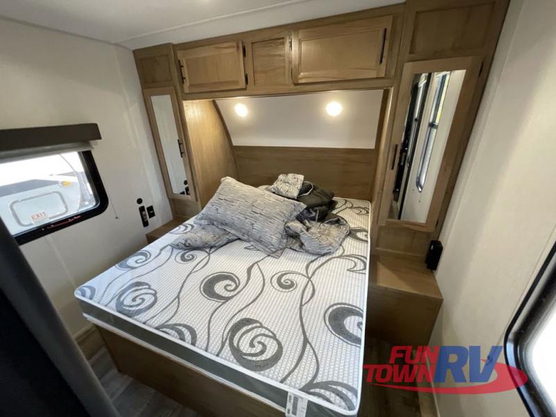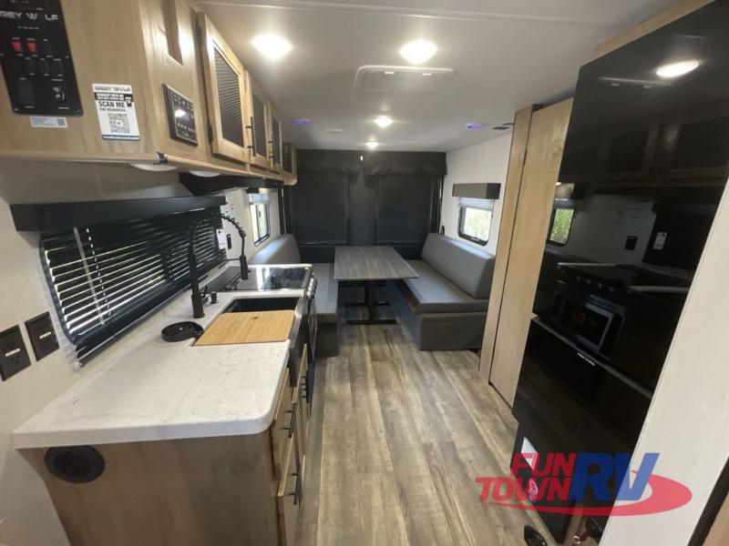 You will love this Cherokee Grey Wolf toy hauler with a rear ramp door for loading and unloading your toys and gear. If you position the fold-down sofas up against the wall, you will have even more room for extra gear when you are moving down the road. Set up camp and easily create a great dining area with the table between each fold-down sofa. You can also create your best meals in a breeze with the airy fryer or cooktop. A large pantry allows you to pack all of the snacks and canned goods you need for your adventure. You will appreciate the master suite up front for a great night's rest on the queen bed along with easy access into the dual-entry bath.