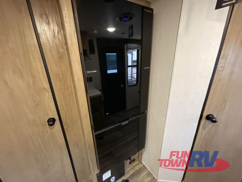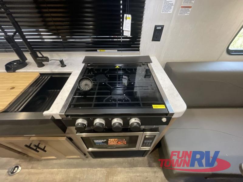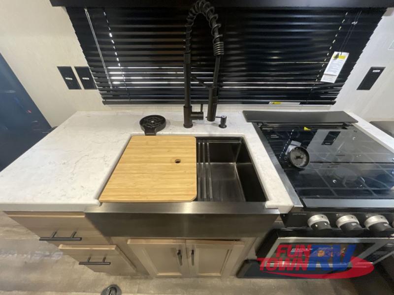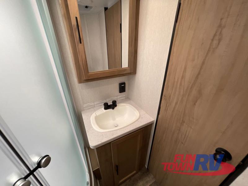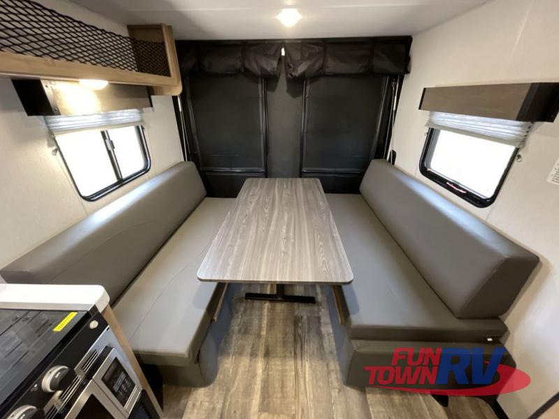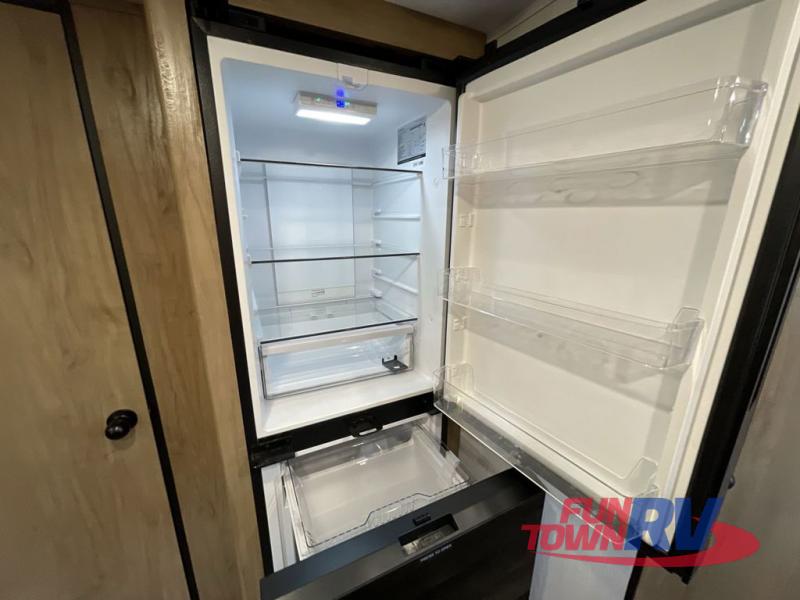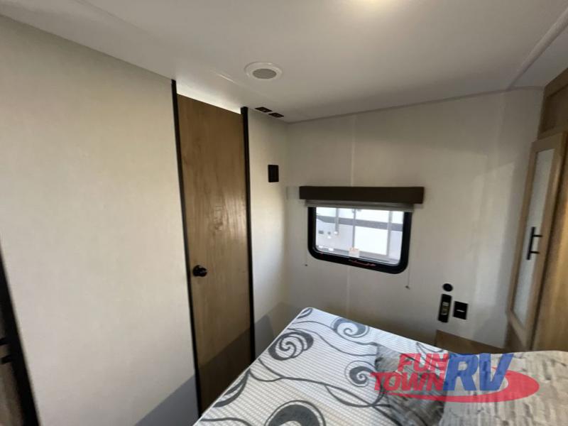 You will love this Cherokee Grey Wolf toy hauler with a rear ramp door for loading and unloading your toys and gear. If you position the fold-down sofas up against the wall, you will have even more room for extra gear when you are moving down the road. Set up camp and easily create a great dining area with the table between each fold-down sofa. You can also create your best meals in a breeze with the airy fryer or cooktop. A large pantry allows you to pack all of the snacks and canned goods you need for your adventure. You will appreciate the master suite up front for a great night's rest on the queen bed along with easy access into the dual-entry bath.