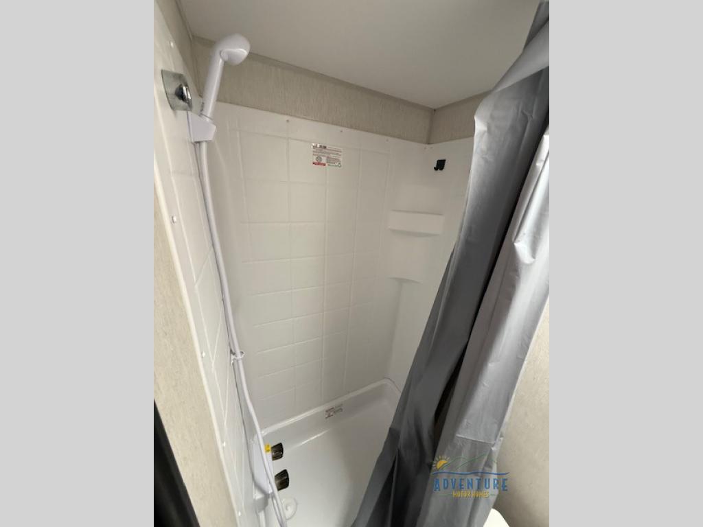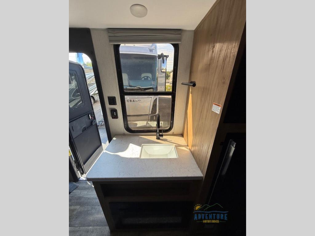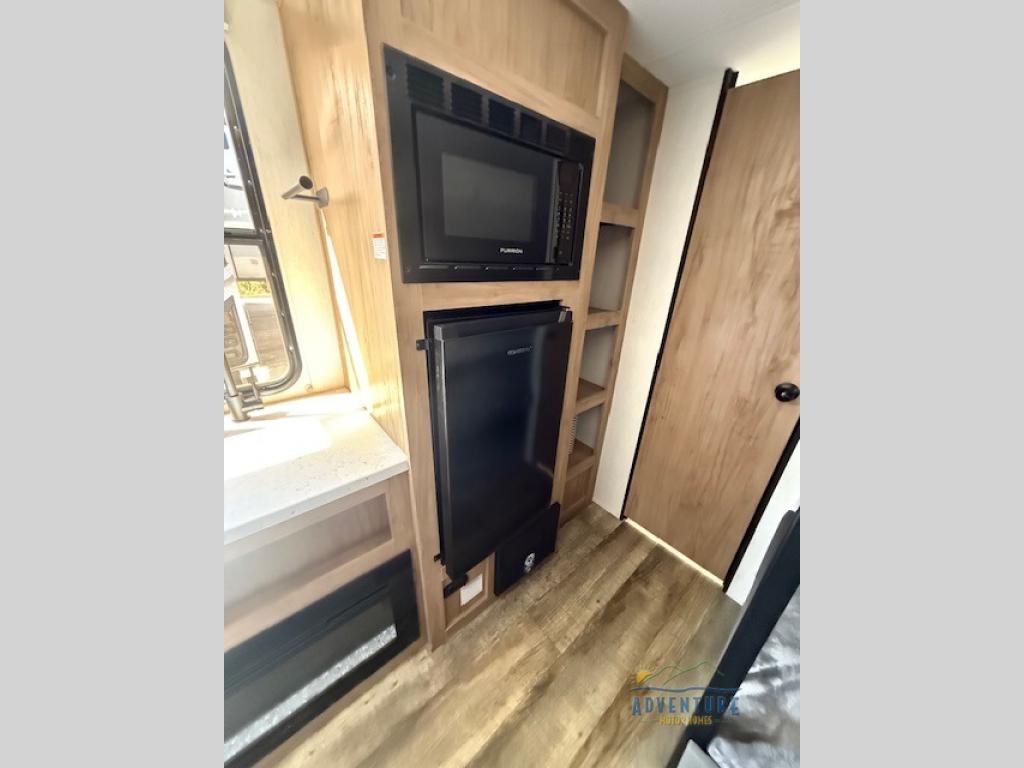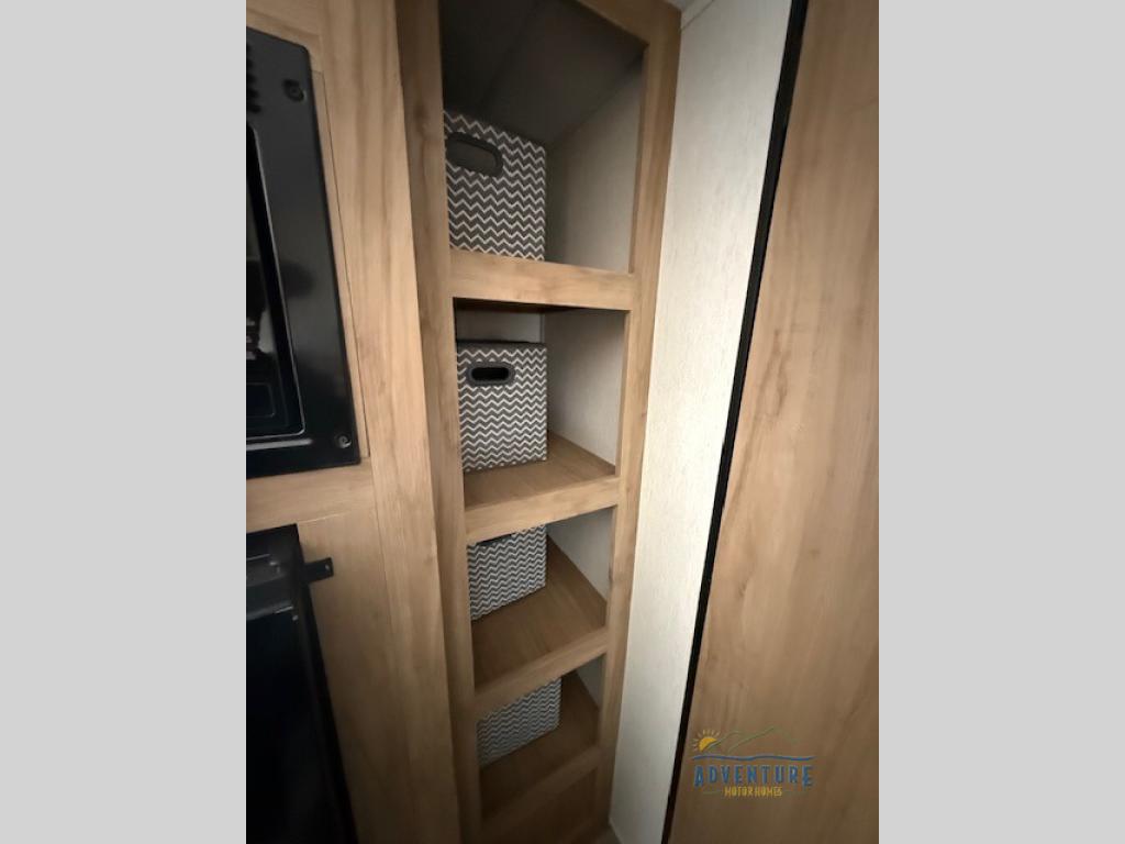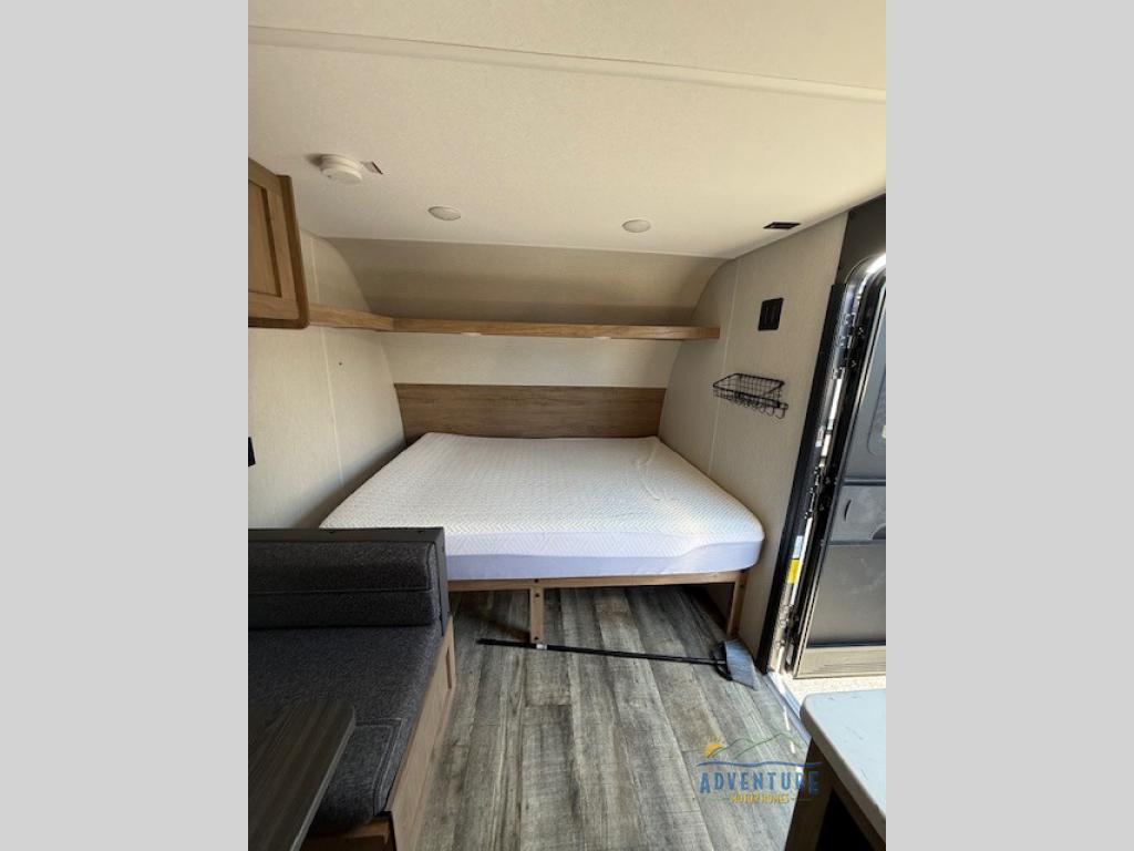 Enjoy family adventures in this all-electric bunk model which features sleeping for four or six depending on size with a queen bed up front, oversized bunks in the rear roadside corner, and you could even convert the booth dinette to sleep more. Inside, you will find ample storage with overhead cabinets and a large shelf above the queen bed, plus four shelves next to the refrigerator and microwave/air fryer that feature decorative storage bins for your things. Use this space for pantry items, towels, or clothing storage. There is even a 5,000 BTU electric fireplace below the counter and sink to bring you a bit of heat on those chilly nights, and you will find TV prep both inside and out if you wish to add TVs for more entertainment. On the outside, you will also find a 12' awning and plenty of outside storage for your camping gear, plus more!
