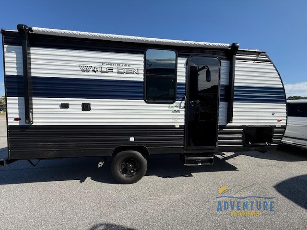 The Cherokee Wolf Den travel trailers by Forest River are lightweight for easy towing, while still including the camping essentials you're looking for! There are a variety of floorplans to choose from, including bunkhouse models, couple's units, and even all-electric floorplans! You'll find a tub/shower in each travel trailer, a comfortable queen bed, seating spaces to relax on, and kitchen amenities that will make your space feel more like home. There are storage spaces inside for your belongings plus outdoor storage for fishing gear, camp chairs, tools, and more! Start a new adventure today in a Cherokee Wolf Den travel trailer today!