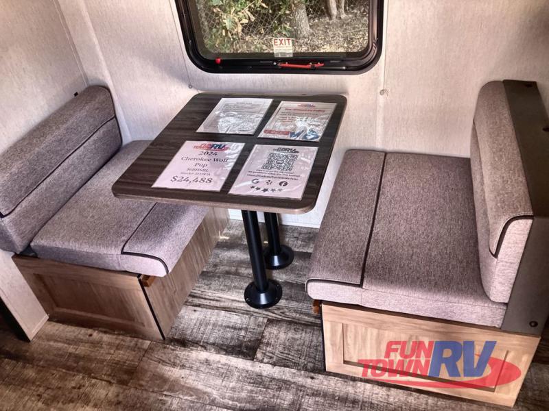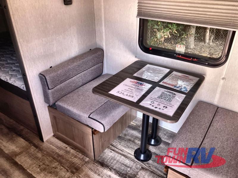 Each one of these Forest River Cherokee Wolf Pup Black Label travel trailers and toy haulers are lightweight and easy to tow! They are fully self contained with ample tank capacities, an abundance of storage space, and filled with at home amenities. Some features included with the Black Label Package that will set these models apart are the LG solid surface countertops, aluminum rims, designer fabrics, and upgraded bedspreads; see dealer for more details. The aerodynamic smooth radius front profile, Power Gear frame technology, and space saver rail design make them easier to maneuver. You will also appreciate the seamless roofing membrane with heat reflectivity to keep the sun from making your unit a hot box. The tongue and groove plywood flooring will hold up for years of fun and the USB charging stations help to keep your electronics at 100% while you're away. Come find the best model for you today!