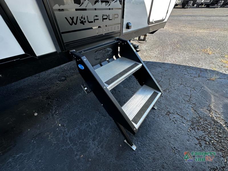 Each one of these Forest River Cherokee Wolf Pup Black Label travel trailers and toy haulers are lightweight and easy to tow! They are fully self contained with ample tank capacities, an abundance of storage space, and filled with at home amenities. Some features included with the Black Label Package that will set these models apart are the LG solid surface countertops, aluminum rims, designer fabrics, and upgraded bedspreads; see dealer for more details. The aerodynamic smooth radius front profile, Power Gear frame technology, and space saver rail design make them easier to maneuver. You will also appreciate the seamless roofing membrane with heat reflectivity to keep the sun from making your unit a hot box. The tongue and groove plywood flooring will hold up for years of fun and the USB charging stations help to keep your electronics at 100% while you're away. Come find the best model for you today!
