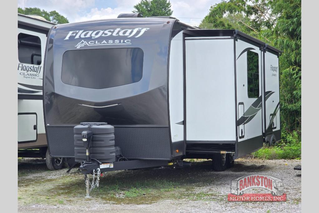 Each one of these Forest River Flagstaff Classic fifth wheels or travel trailers will be your home on wheels! Their quality craftsmanship and attention to detail shines through the surface-coated steel I-beam frame on fifth wheels, the enclosed underbelly, the radius roof with vaulted interior ceilings, and six-sided fully aluminum-framed floor, walls, and roof. Towing your unit will be easy with the torsion axle, Rubber-Ryde suspension, and nitrogen-filled Goodyear Endurance tires. You will even reduce your use of water with the Showermiser water saving system in the bathroom. A few other convenient features you will enjoy include a control panel with WeRV app control, a designer headboard and bedding, and an outside shower with hot and cold water. Come choose your favorite one today!