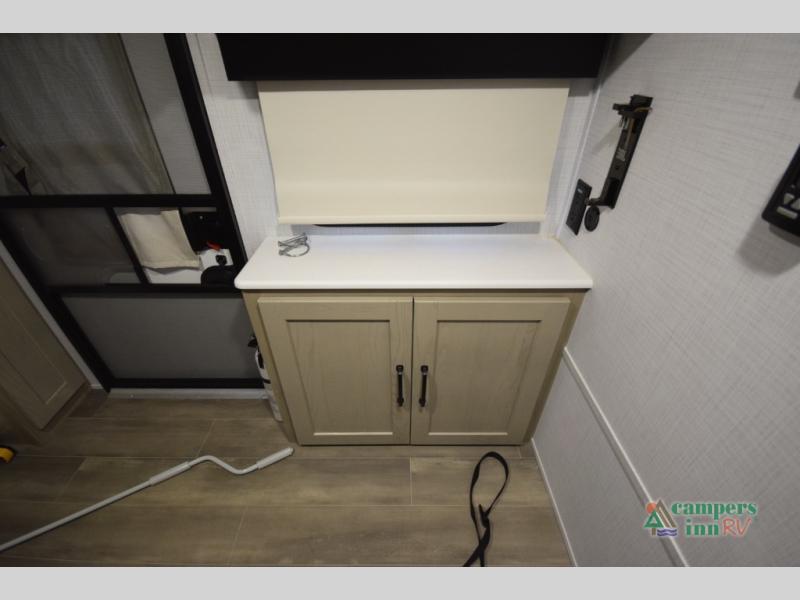 After a day of exploring the great outdoors, stretch out and relax on the gaucho bed, your cozy retreat for a restful night under the stars. When hunger calls, fire up the outdoor kitchen—complete with a sink for easy cleanup, a carry-out range and griddle for sizzling burgers, plus a refrigerator and microwave to keep your ingredients fresh and meals hot. Overhead cabinets and a roomy wardrobe give you plenty of storage for gear, groceries, and adventure essentials.