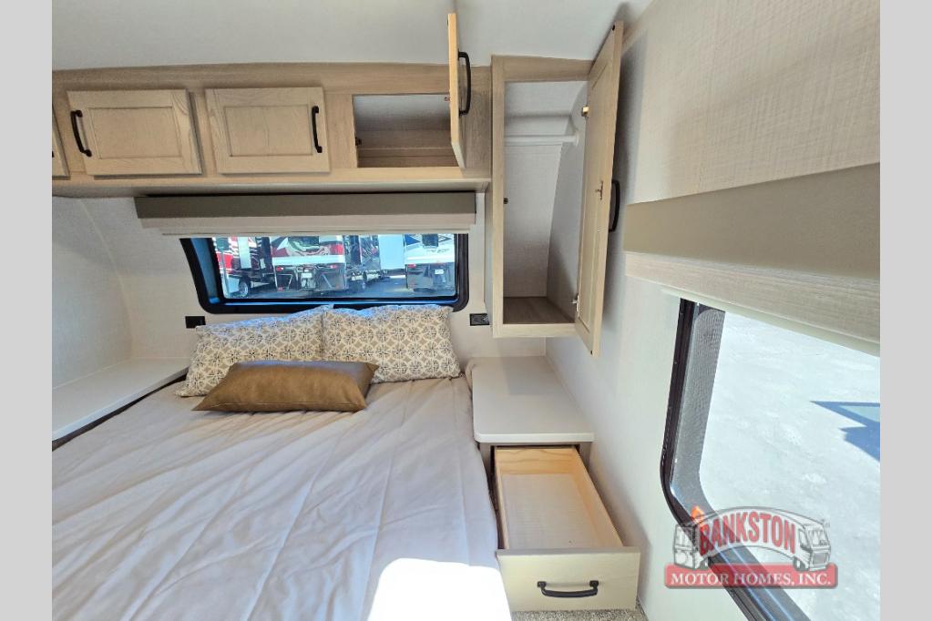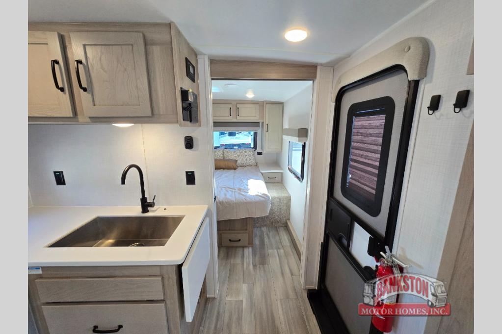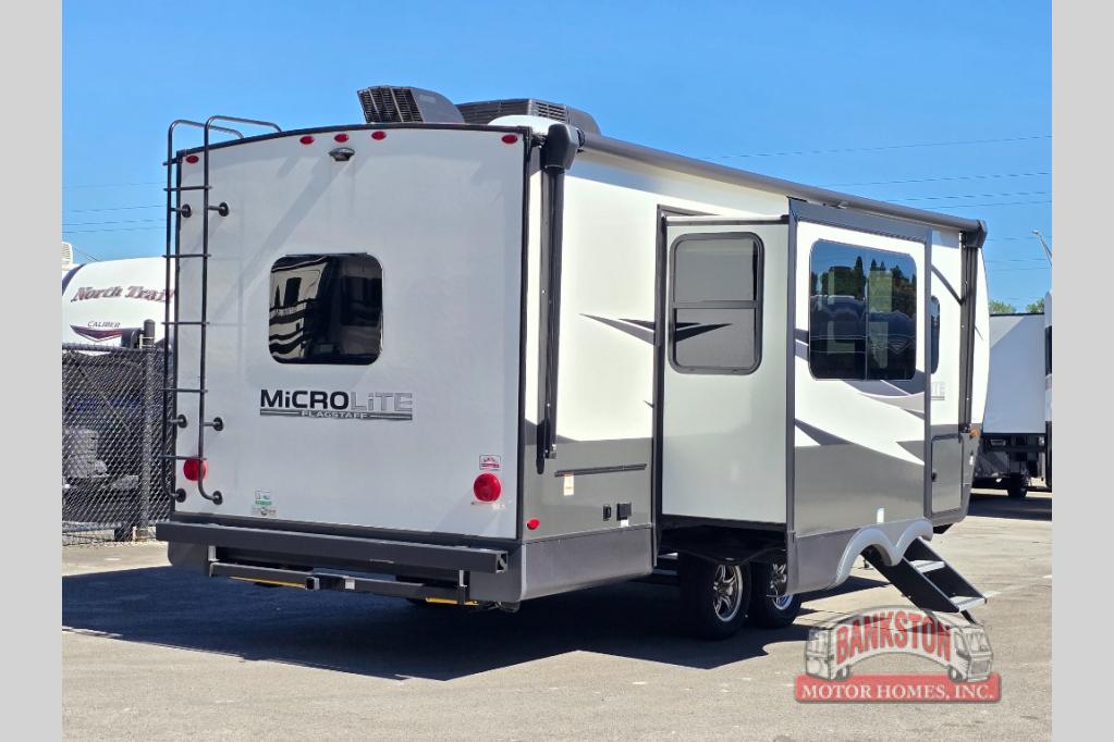 With any Flagstaff Micro Lite travel trailer by Forest River you will enjoy lightweight towing, durable construction, and added interior comforts to make each trip memorable! Each model features a torsion axle, Rubber-Ryde suspension, nitrogen filled, Goodyear Endurance tires, and easy lube axles with Nev-R-Adjust brakes for smooth towing from home to campground. The 6-sided aluminum framed construction provides a strong foundation so you can enjoy your RV for years to come, plus electronically controlled heated holding tanks and an enclosed underbelly will let you camp all year long. Head inside to find hybrid woven flooring in the slide outs, Sedona wood cabinetry, solid surface kitchen countertops, and many more amenities. These travel trailers also include exterior conveniences for hassle-free camping, like the power tongue jack, magnetic compartment door catches, Keyed Alike locks, and rear ladder to name a few!