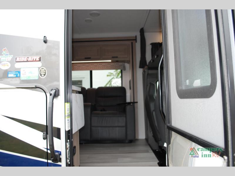 With any Forester Classic Class C gas motorhome by Forest River you will enjoy comfort at every turn! They offer a smooth ride with the EZ Ryde premium suspension system, and the ultra leather captain's seats will ensure comfort wherever you go. There are heated, enclosed holding tanks and valves plus block foam insulation to enjoy four-seasons camping, and the gel coat exterior fiberglass is slick and easy to keep clean. A keyless entry comes standard for your convenience, along with a color back-up camera and side view cameras with a 3-way monitor for added safety when parking. The Forester Classic motorhomes also include a Maxx Air multi-speed power fan with a cover, a shower skylight, a cordless 12V charging plate, plus black out roller shades for privacy any time.