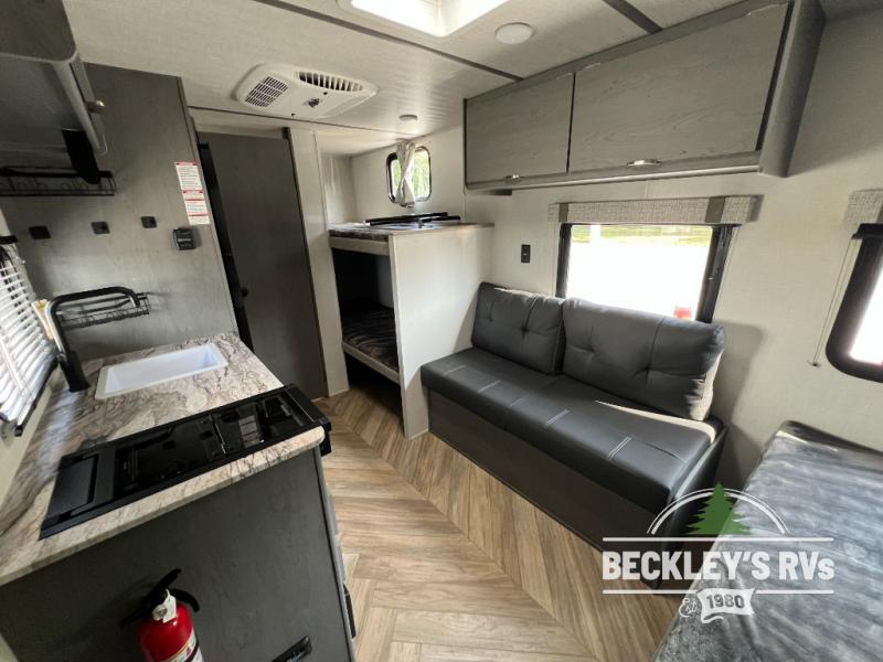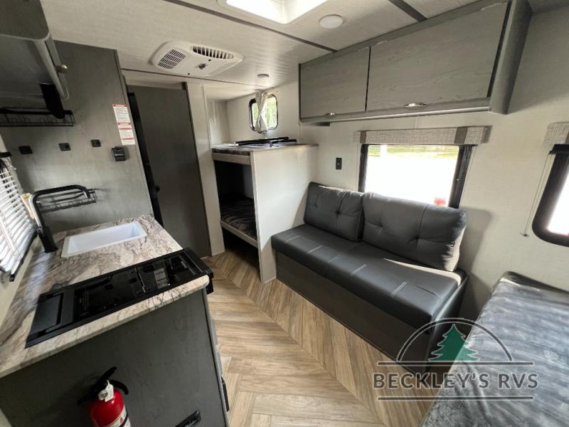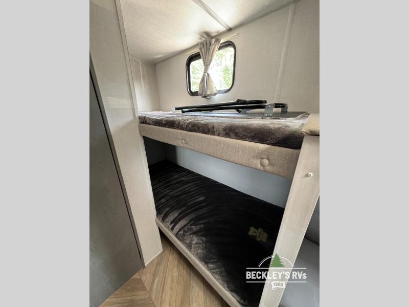 This Limited Edition travel trailer is perfect for your crew of five thanks to the added bunk beds! You can take the front queen bed for yourselves, and any other guests can sleep on the sofa if needed. You will find ample overhead cabinets on both sides of the unit, and wardrobe by the bed for your clothes. Prepare all your meals in the fully-equipped kitchen that includes plenty of counter space and a 4.5 cu. ft. refrigerator. On the outside, an 8' 12V power awning will provide an outdoor living space you are sure to love as well!