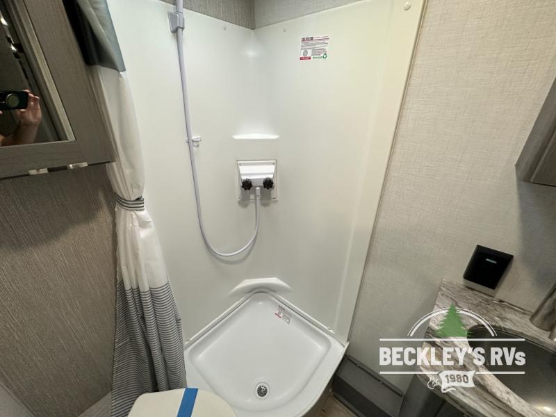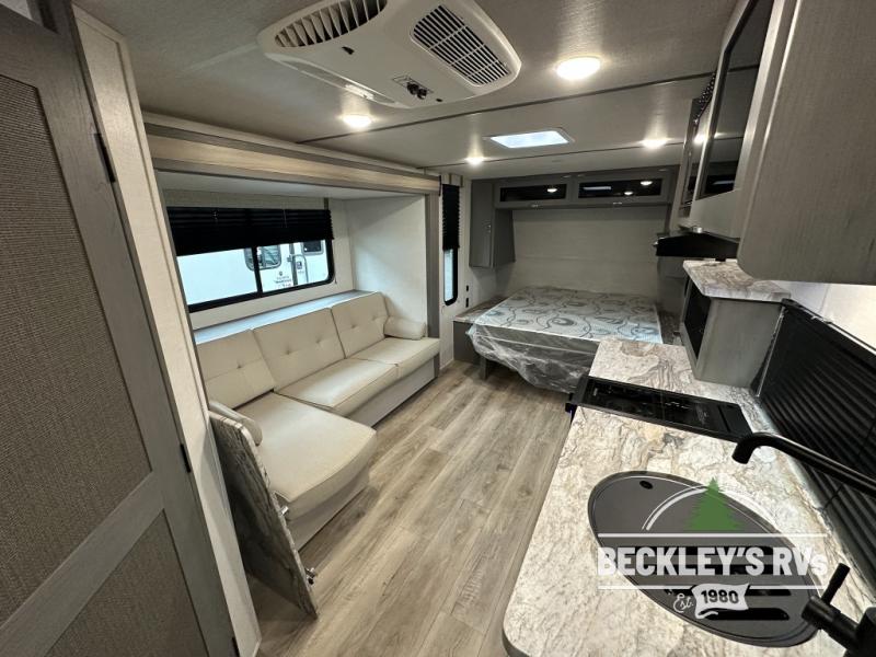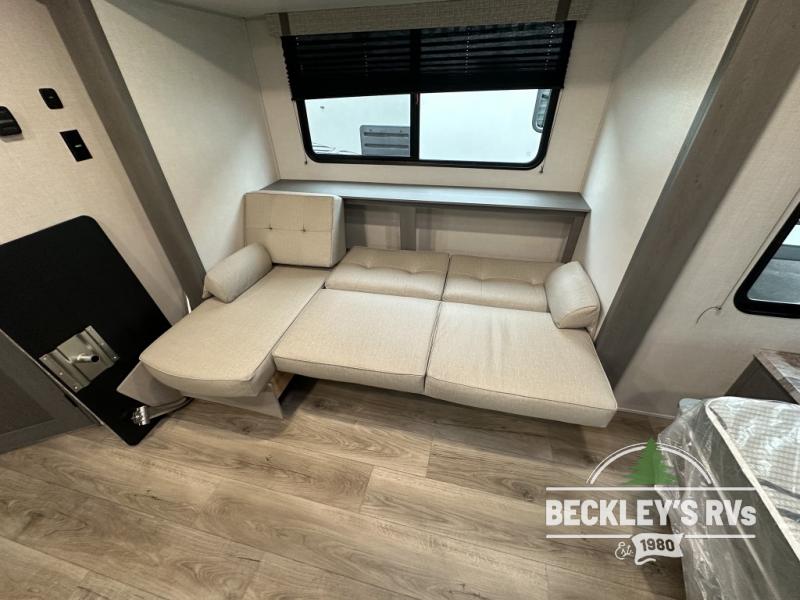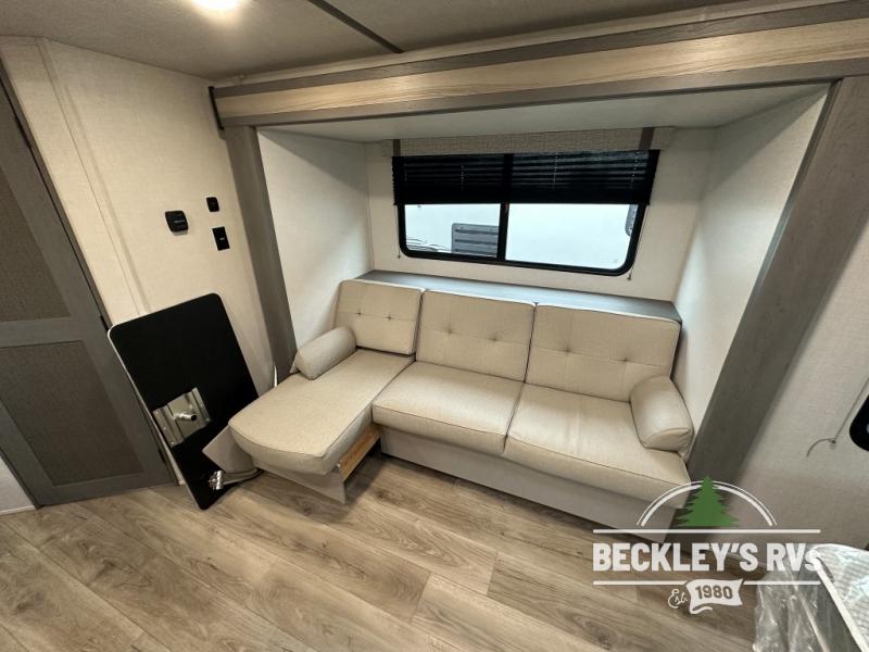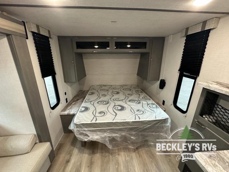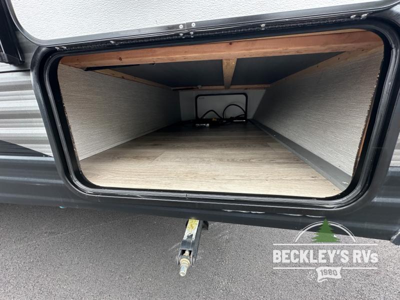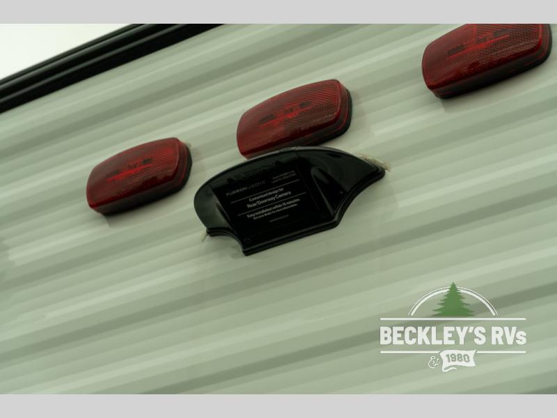 Start camping in this well-equipped travel trailer! The compact kitchen has everything you need to prepare your best home cooked meals and you can enjoy them at the convertible chaise lounge with a folding sofa and a table. Freshen up each morning in the rear corner bathroom with the corner shower and rest each night on the front queen bed with wardrobes on either side and overhead storage. Rinse the mud off your feet with the exterior hot/cold shower to be sure you do not track it all throughout the inside. Don't leave any of your outdoor gear behind; simply store it in the exterior full pass-through storage area!
