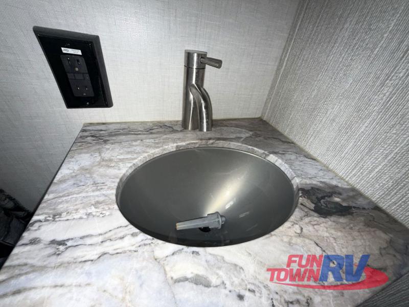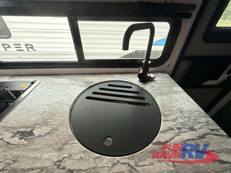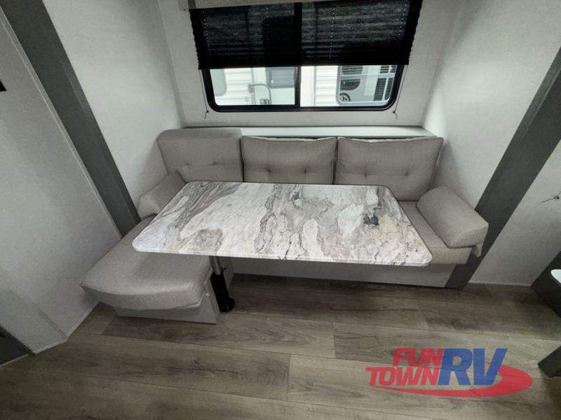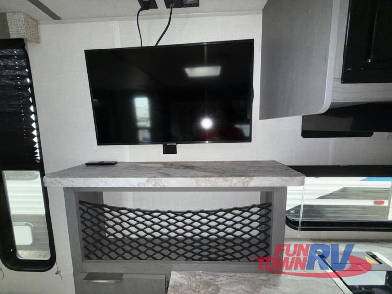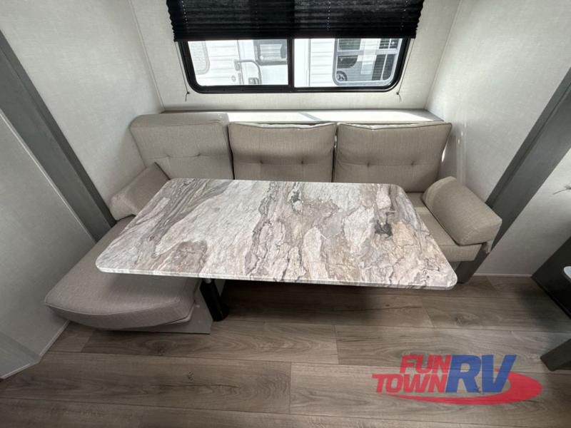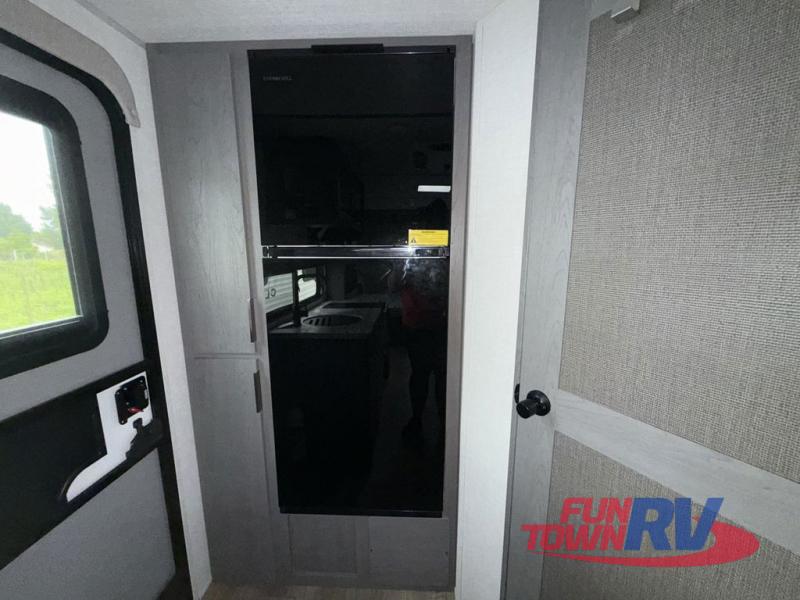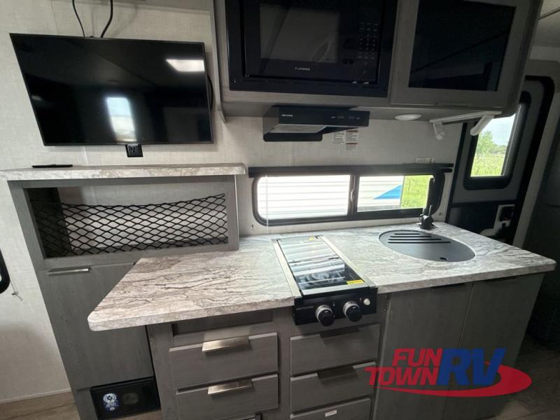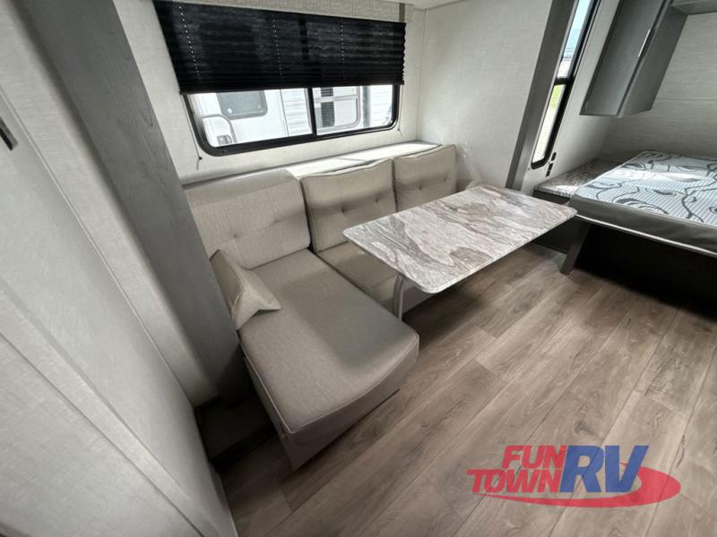 Start camping in this well-equipped travel trailer! The compact kitchen has everything you need to prepare your best home cooked meals and you can enjoy them at the convertible chaise lounge with a folding sofa and a table. Freshen up each morning in the rear corner bathroom with the corner shower and rest each night on the front queen bed with wardrobes on either side and overhead storage. Rinse the mud off your feet with the exterior hot/cold shower to be sure you do not track it all throughout the inside. Don't leave any of your outdoor gear behind; simply store it in the exterior full pass-through storage area!