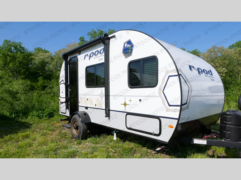 With any R Pod Classic travel trailer by Forest River, you will enjoy at home-comforts and lightweight towing. There are magnetic door catches that will easily keep the door open when you're packing hiking gear or bringing in your luggage. Each model includes 30 Amp service with a detachable power cord, a 20 lb. propane tank with a cover, and a high efficiency roof-mounted air conditioner that will keep you cool during the summer camping months. Inside, you'll find a two burner recessed cooktop with a flush mount glass cover, a convection microwave, and new Cosmetic Graphite interior for a modern look you will love.