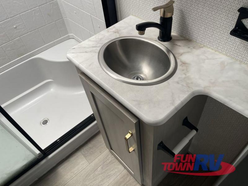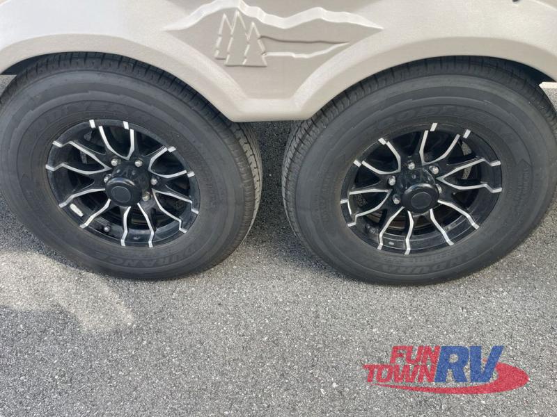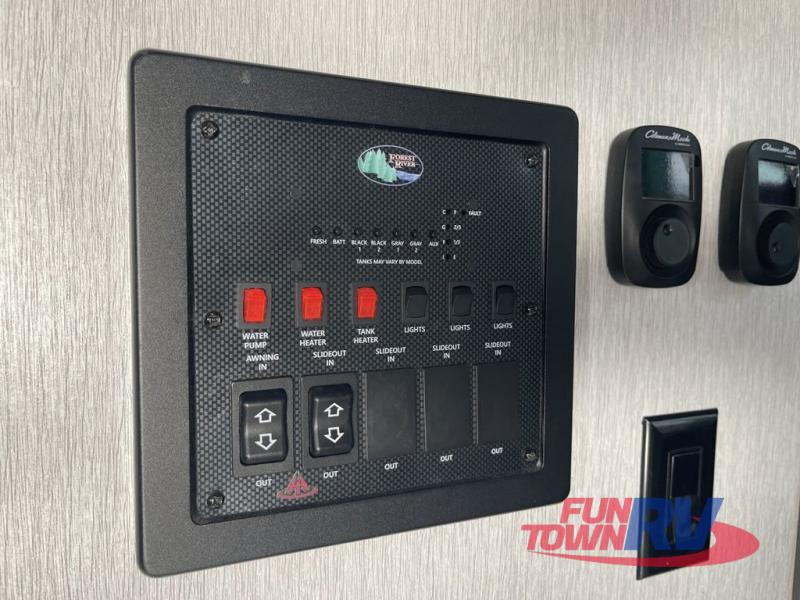With each Forest River Salem Hemisphere fifth wheel and travel trailer, there are vacuum bonded "Aluma Frame" sidewalls and floors and square windows with built-in shades with reflecting thermal-foil backing and painted hardwood trim. You'll also find Goodyear radial tires with black accented rims and a 60K BTU on-demand tankless water heater for hassle-free camping. The 15K BTU Quiet Cool A/C on a Race Track duct system will keep you comfortable all summer long, and the LED TV and Furrion soundbar with FM/Bluetooth/HDMI/USB will keep you entertained on rainy days. You'll find many comforts inside, along with ample storage space for your belongings and gear, full bath and kitchen amenities, plus comfortable seating and sleeping spaces!