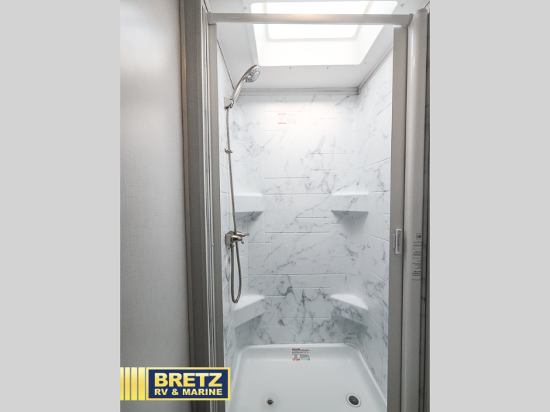 Take your family on great adventures in this Sunseeker LE Class C gas motorhome! This coach has a full kitchen equipped with a flip-up countertop, 1.3-cubic foot convection microwave, recessed three-burner range, soft-touch self-closing drawer guides, and a 10.7-cubic foot 12V refrigerator. Across from the kitchen is a U-shaped dinette that also has four seatbelts for traveling, and there are two large storage drawers in the dinette. The bathroom has an electric roof fan, an oxygen-infused shower head with flexible extension, and a shower skylight for more natural light in the morning. There is also a 12V LED TV for entertainment at night out in the main living area.