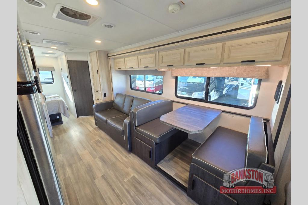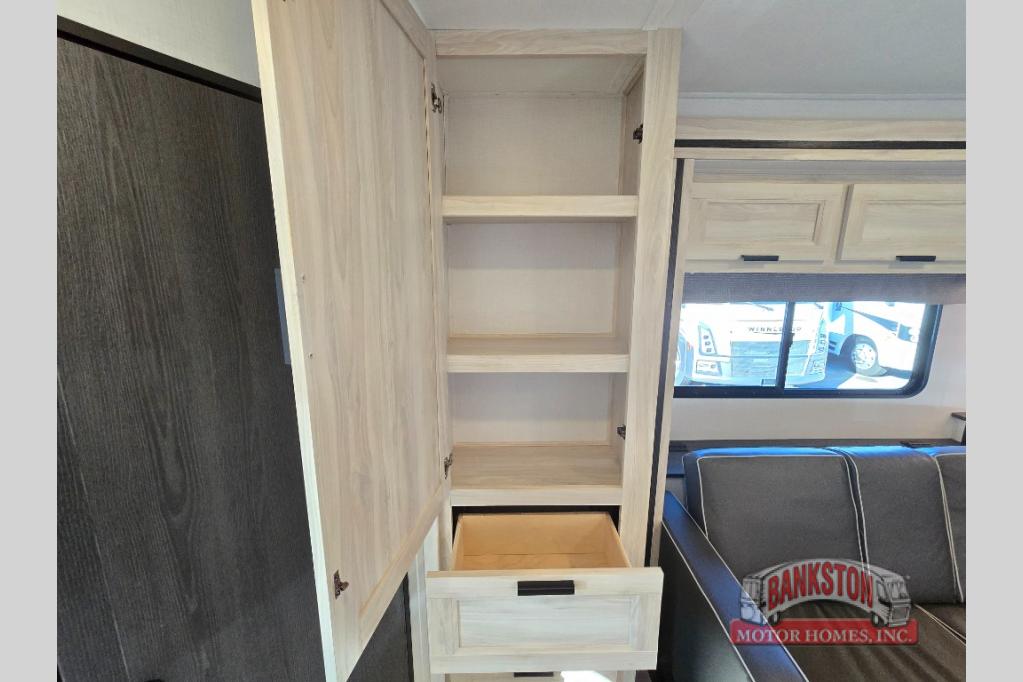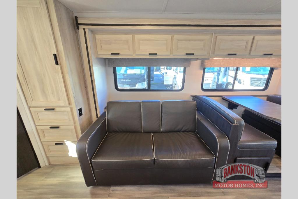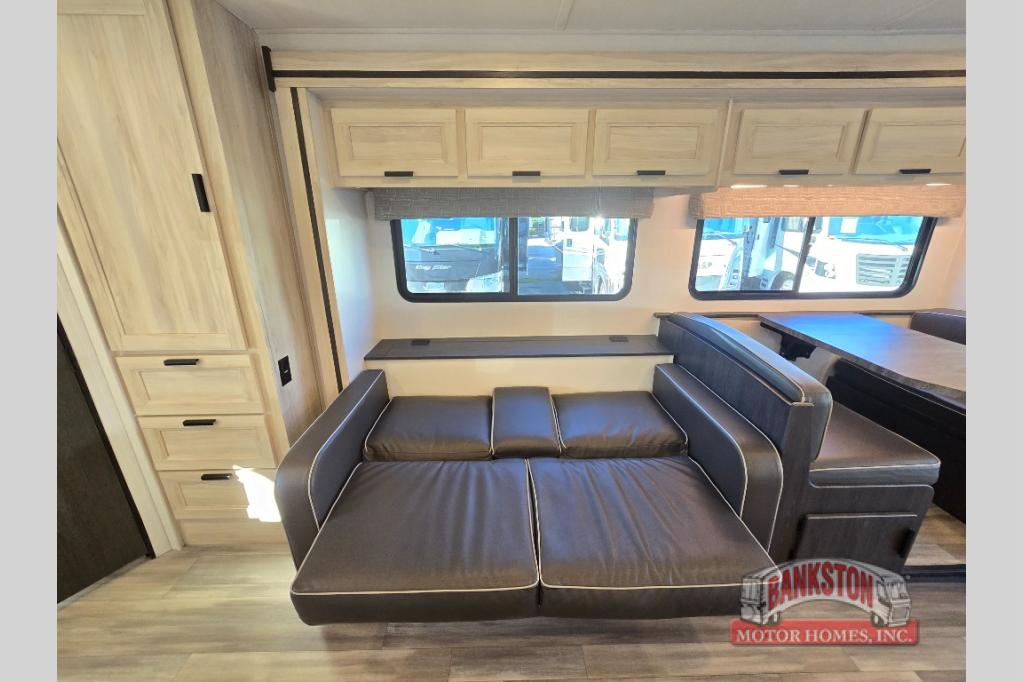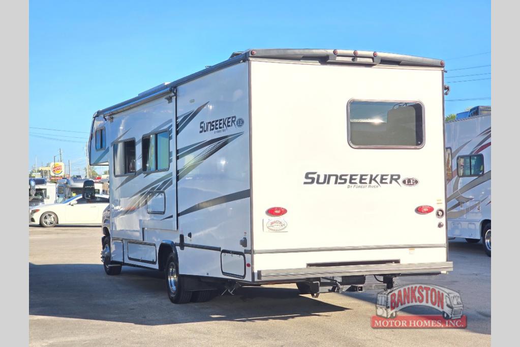 Don't make the mistake of passing up this Sunseeker LE Class C gas motorhome! There is a full bathroom with a shower skylight, oxygen-infused shower head with flexible extension, and an electric roof fan, and the bathroom is right next to the bedroom for convenience. The pantry, linen closet, wardrobe, and overhead storage offer you places to tuck away your belongings, and there are also two large storage drawers in the booth dinette as well. While you're resting on the sofa, you can watch the 12V LED TV, or you can chat with the chef who is preparing dinner on the recessed three-burner range or in the convection microwave.