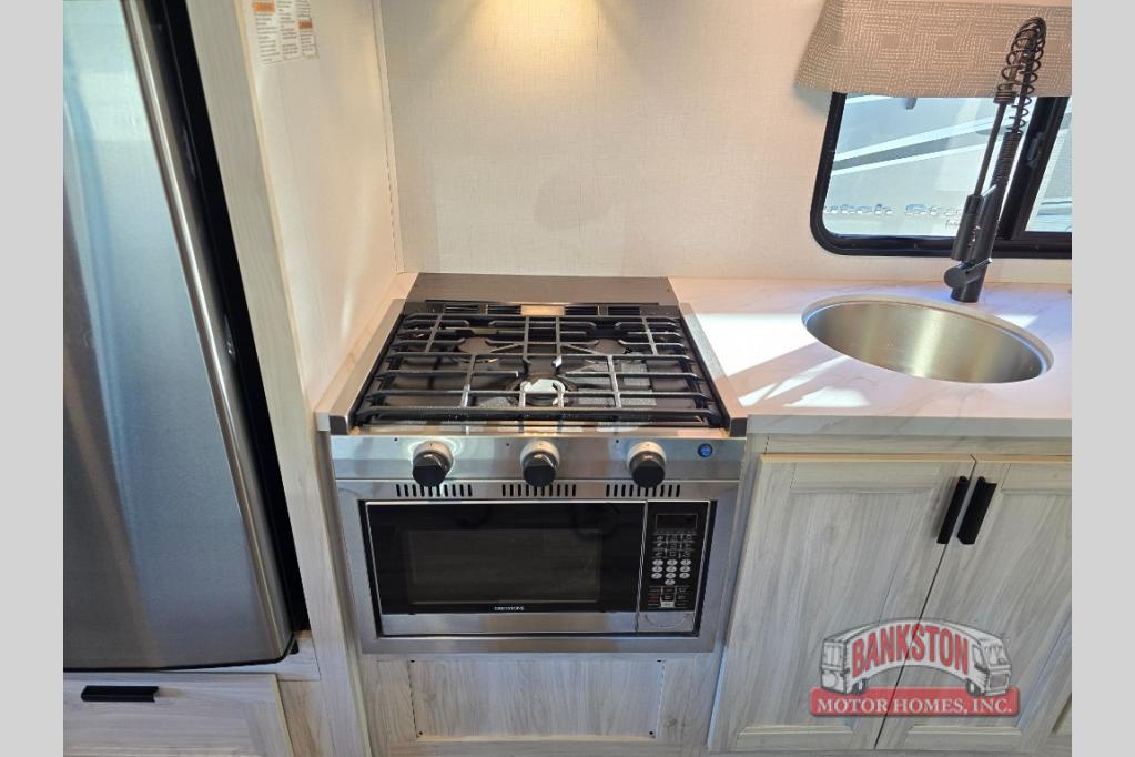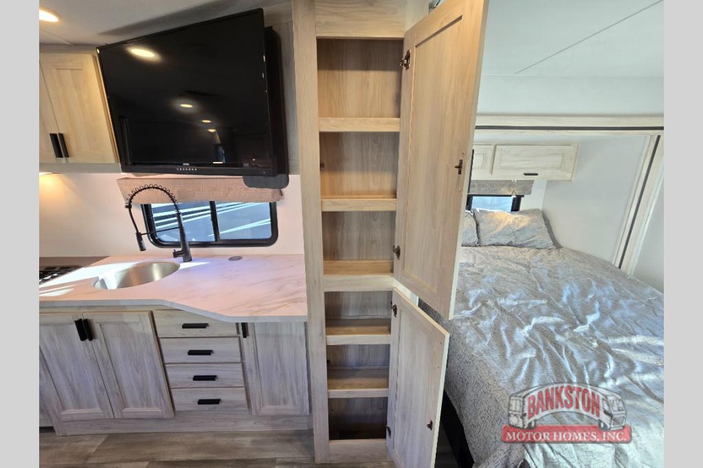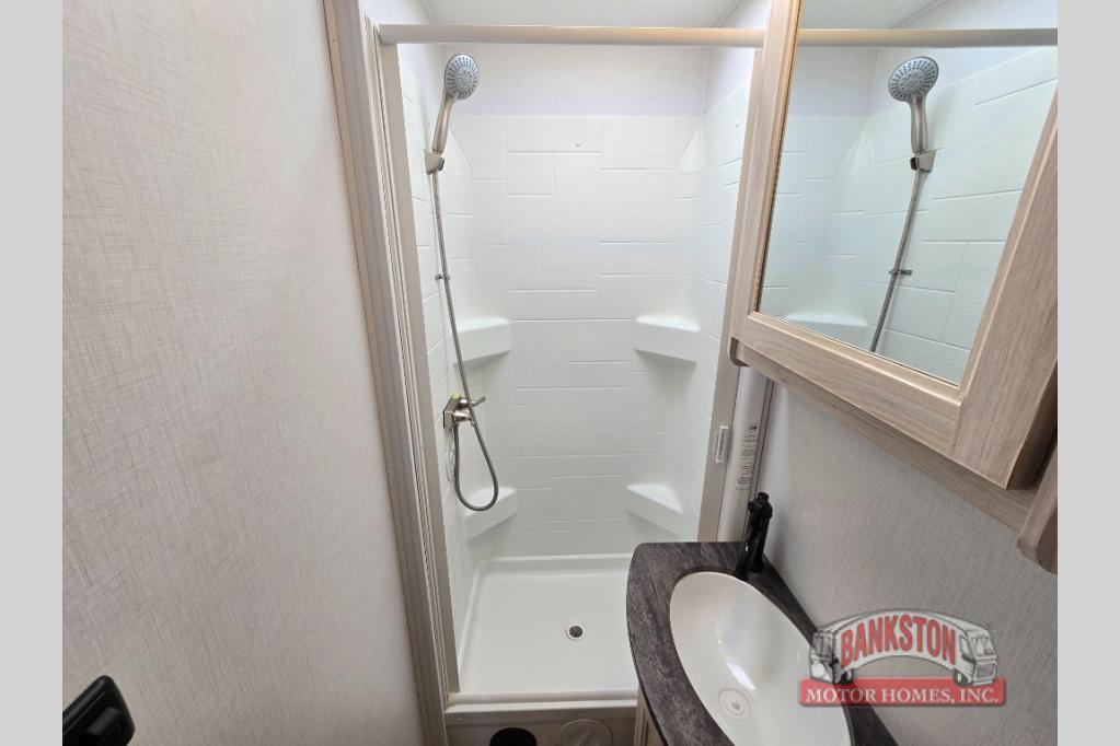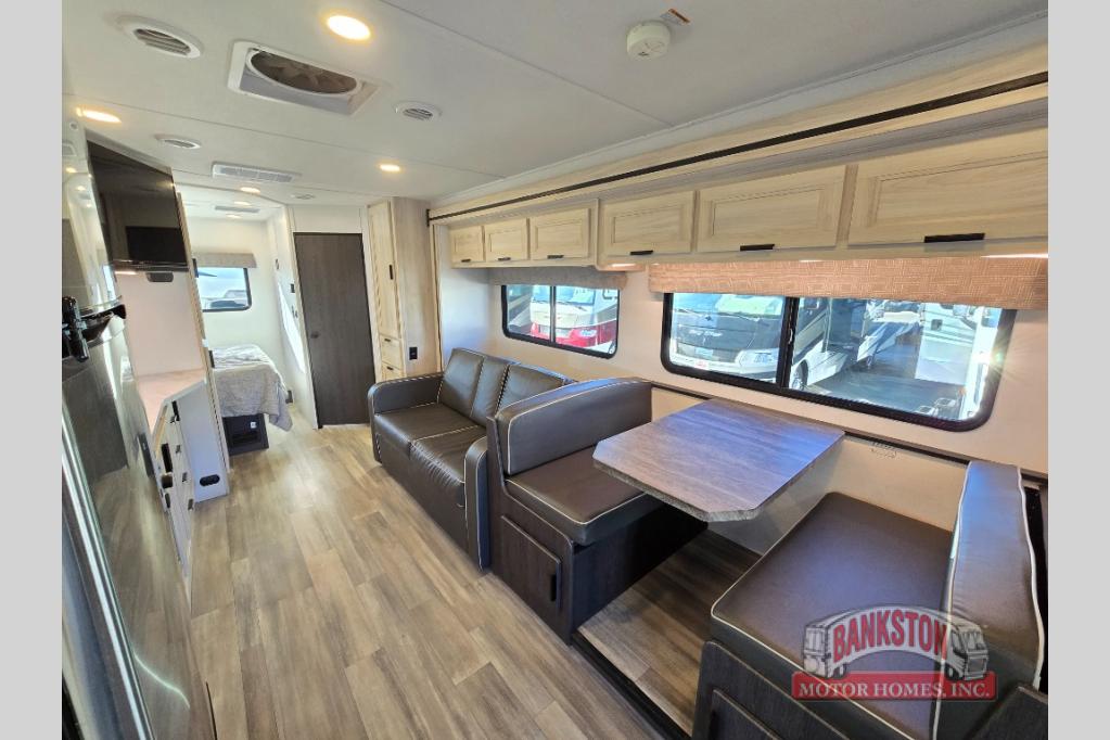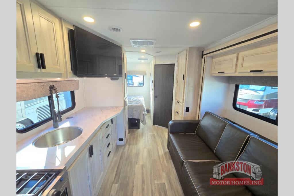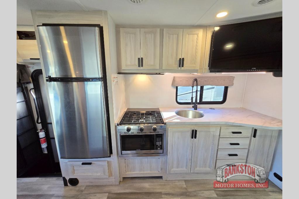 Don't make the mistake of passing up this Sunseeker LE Class C gas motorhome! There is a full bathroom with a shower skylight, oxygen-infused shower head with flexible extension, and an electric roof fan, and the bathroom is right next to the bedroom for convenience. The pantry, linen closet, wardrobe, and overhead storage offer you places to tuck away your belongings, and there are also two large storage drawers in the booth dinette as well. While you're resting on the sofa, you can watch the 12V LED TV, or you can chat with the chef who is preparing dinner on the recessed three-burner range or in the convection microwave.