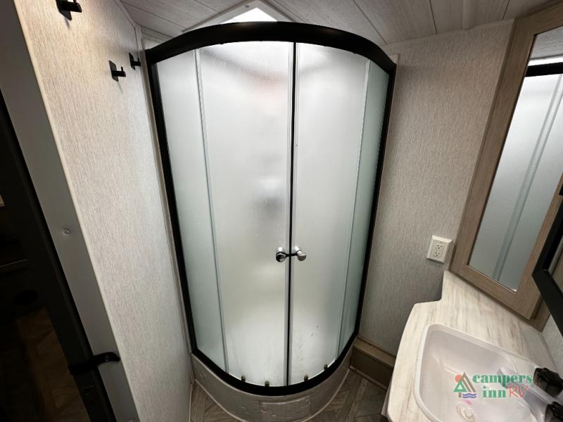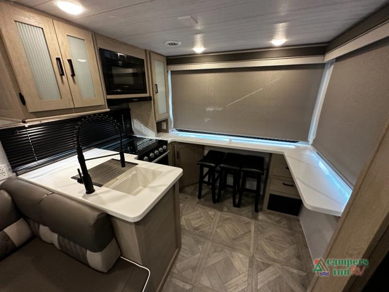 The Forest River Wildwood X-Lite travel trailers are comfortable enough to make any destination feel like home! The Wildwood X-Lite has a Dicor PVC roof membrane, a powder-coated I-beam frame, nitrogen-filled tires, and a cambered chassis as the base for all of its luxurious additions. Within the reliable construction, you will find excellent interior amenities, like the upgraded high-rise spring kitchen faucet, a huge kitchen window, a Bluetooth stereo, and upgraded designer furniture. The Wildwood X-Lite also comes with a pass-through storage compartment for your gear, an upgraded shower head, and a new 60K tankless water heater so you can have hot water when you need it!