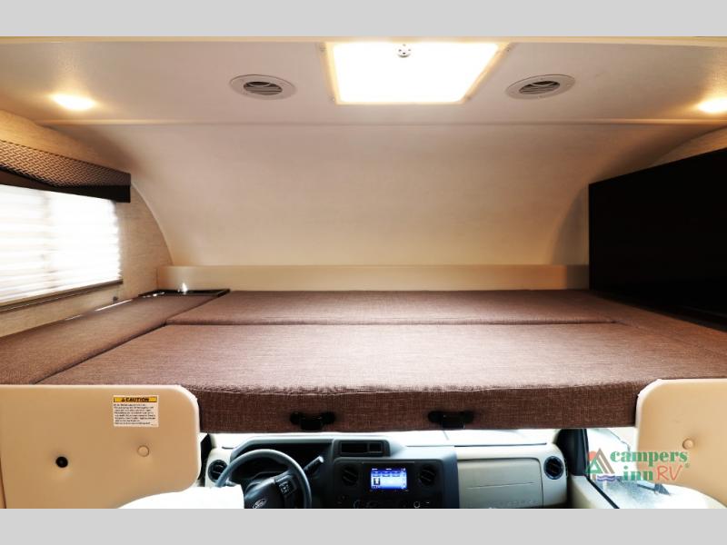 According to Thor Motor Coach specs, the Four Winds?27R offers among its key highlights: king bed, large slide-out, cab-over bunk, jack-knife sofa, and electric stabilizing system.