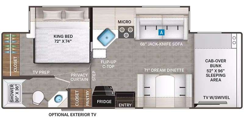 Easy to drive at just under 30ft, manageable size for RV newbies.
