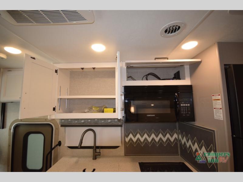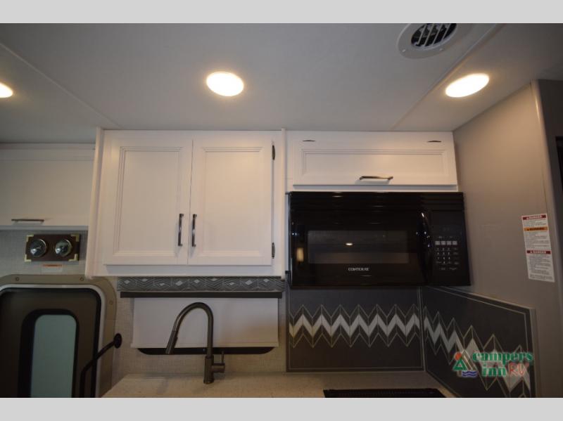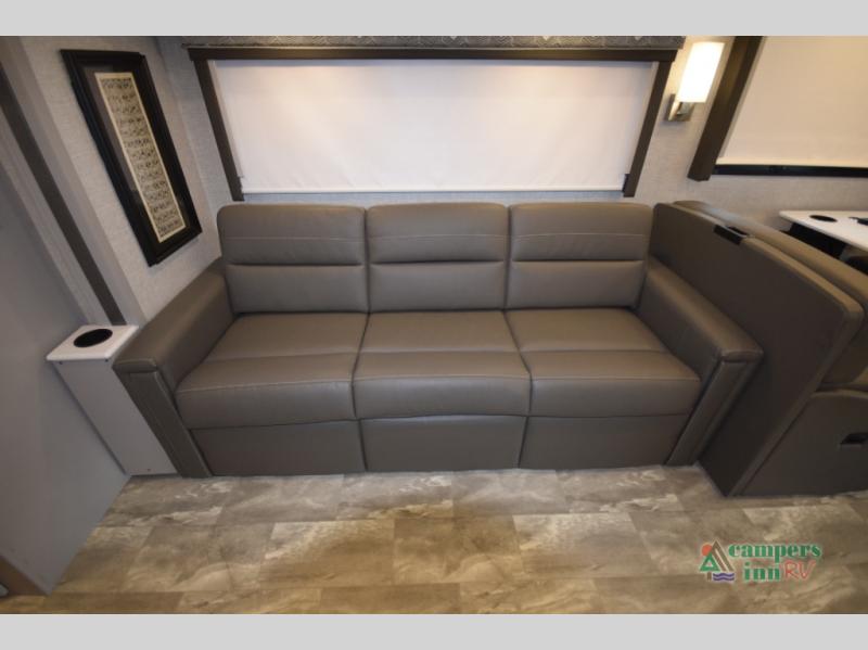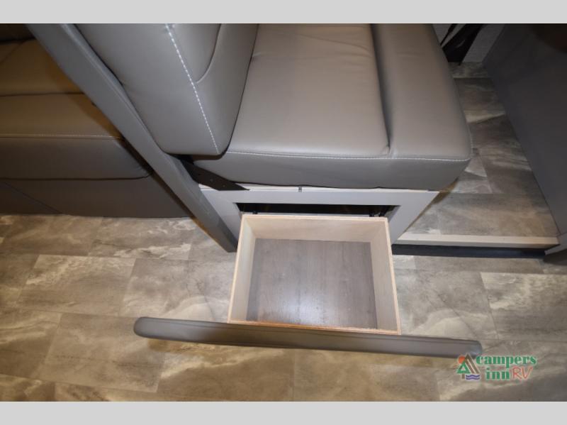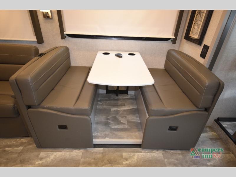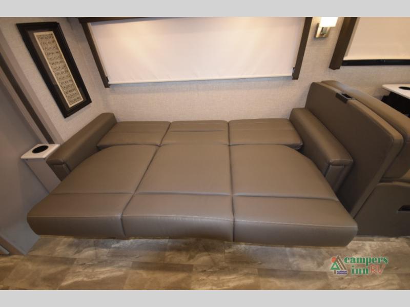 Need extra sleeping space? The drop-down bunk above the cab and expanding sofa bed offer room for the whole crew, while the 70" Dream Dinette easily transitions from meals to movie nights to extra sleeping space.