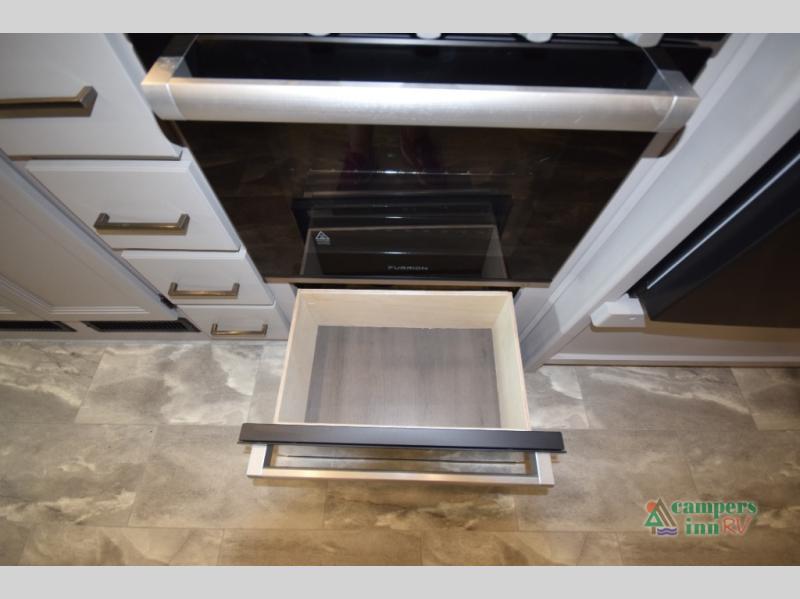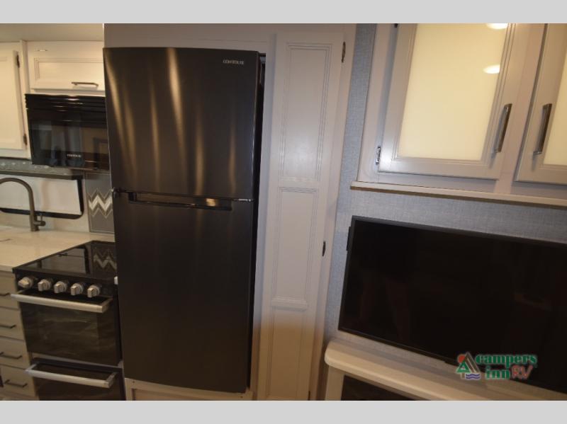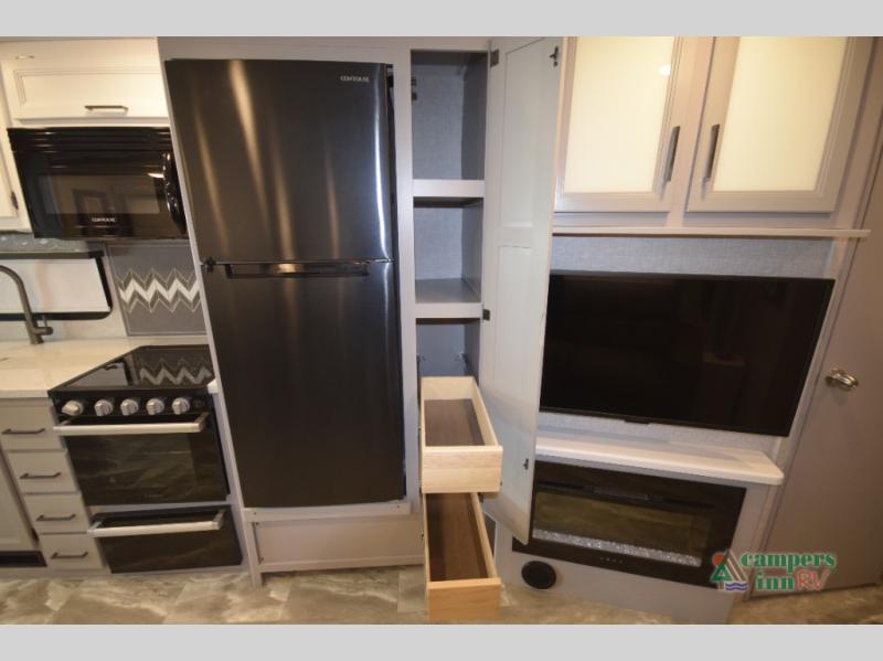 Stay connected with the Winegard® ConnecT™ Wi-Fi extender + 4G, manage your rig from anywhere using the Rapid Camp+® multiplex system with Bluetooth, and enjoy media on any of the three LED Smart TVs, including a 32" exterior TV for nights under the stars.