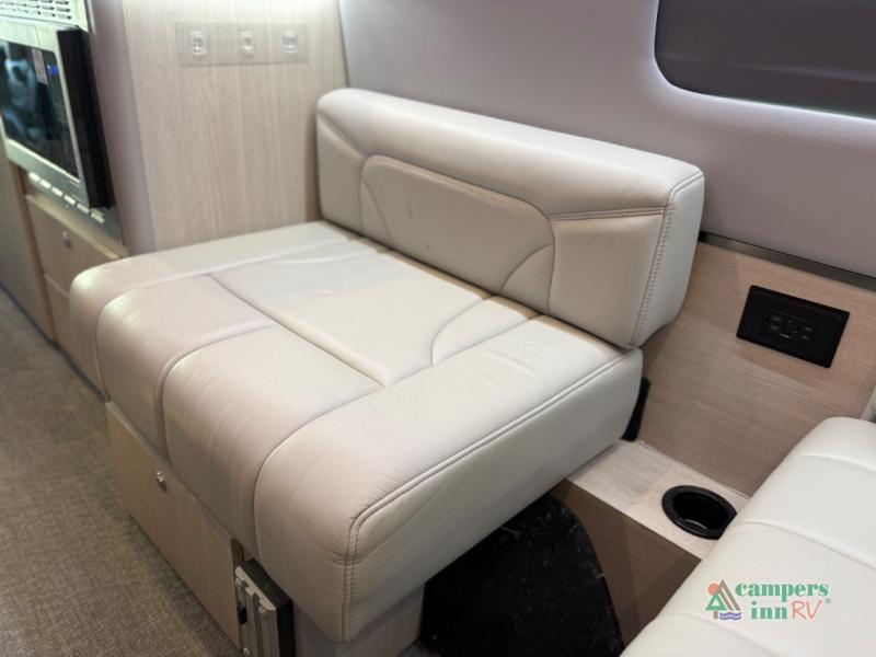Versatile living & sleeping: Even though it’s a smaller Class B vehicle, it makes the most of space. There are captain’s chairs that swivel, a power sofa bed for nights, and enough seatbelts for road trips with friends.