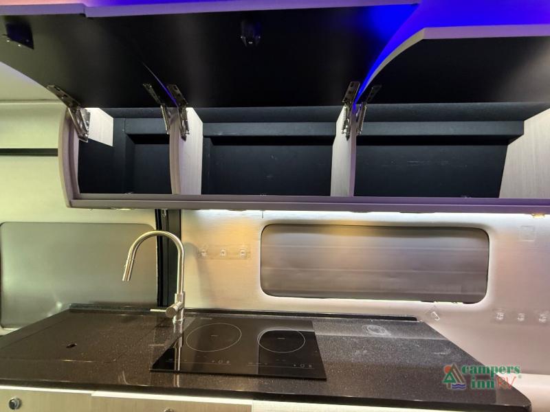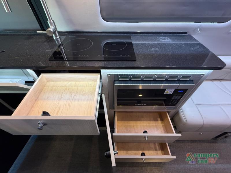 Smart, luxurious interior: High-end materials like Ultraleather seating, Swiss-chrono hardwood cabinets, soft-touch walls and headliners. Stylish finishes with thoughtful touches all around: good lighting, excellent storage, modern kitchen appliances like induction or convection/air-fryer combos.