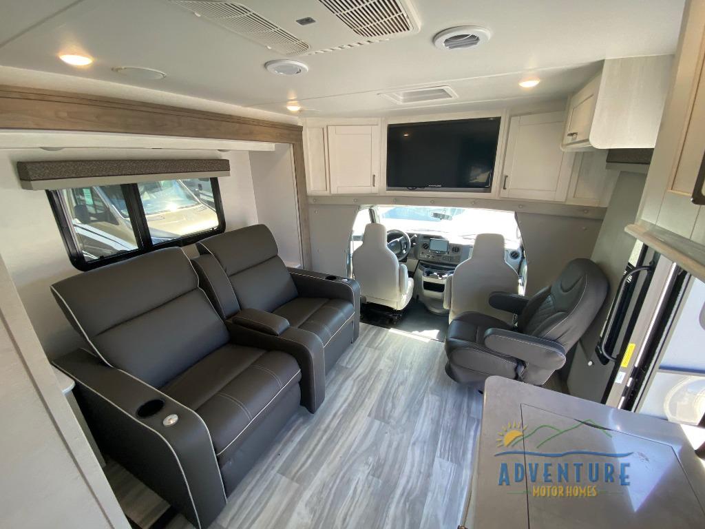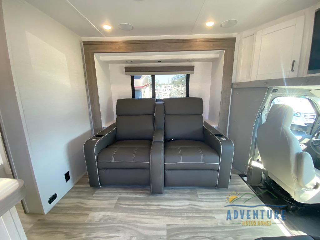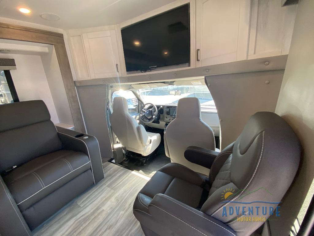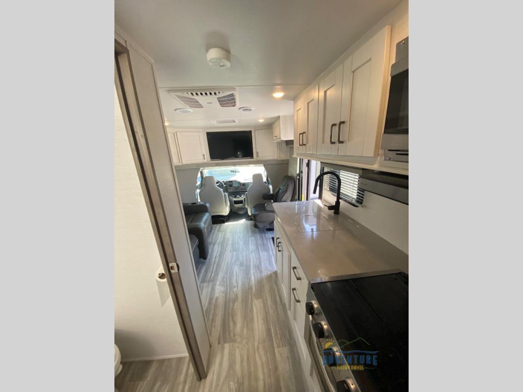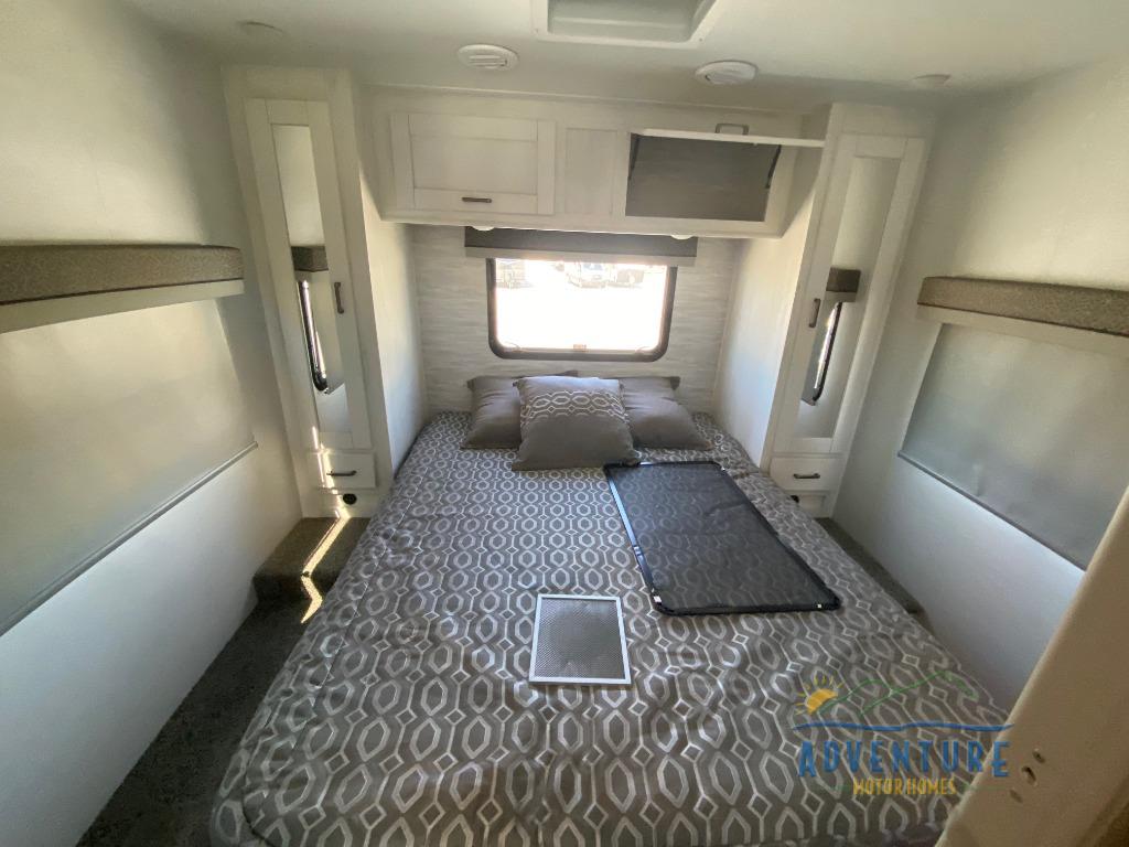 It will surely be a toss-up on which you enjoy the most, the drive while sitting on the 2-way driver and passenger seats, or sleeping in your own private rear bedroom with a walk-around RV queen bed at the campsite! The bedroom also includes dual shirt closets and overhead storage. The side-aisle bathroom includes everything you will need to stay refreshed, and the full kitchen amenities allow you to cook warm meals and store leftovers! You can dine at the Soft Touch jackknife sofa with cupholders and a table, or relax on the barrel chair, as well as relax outside on your camping chairs under the electric awning.