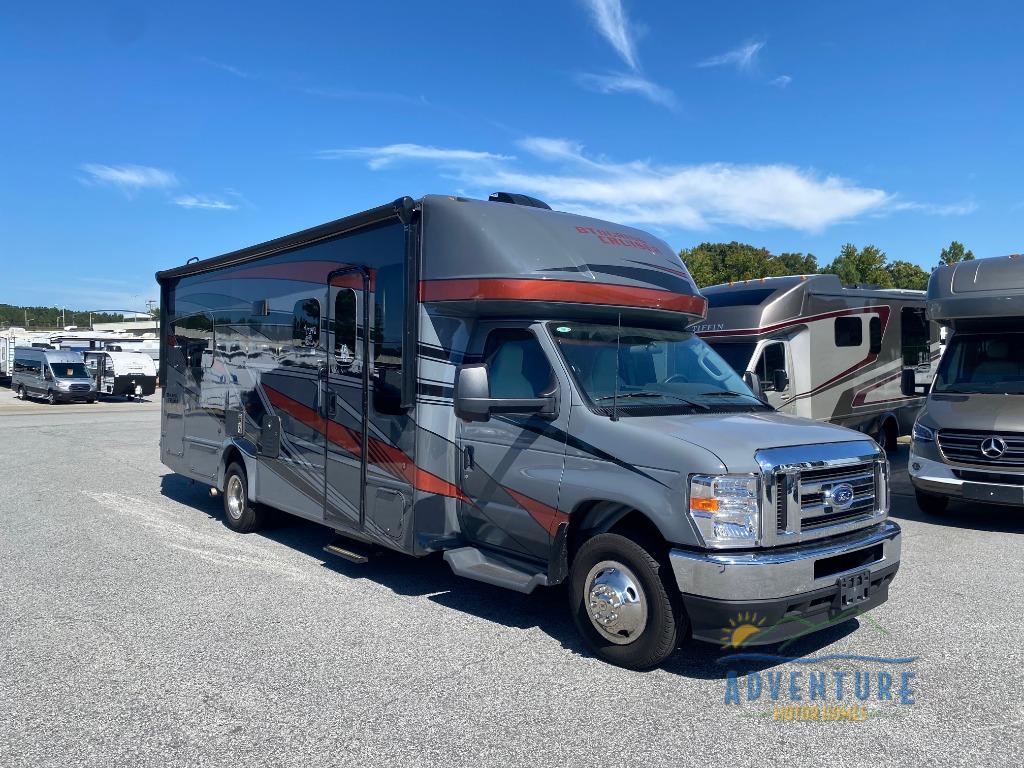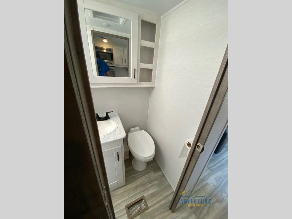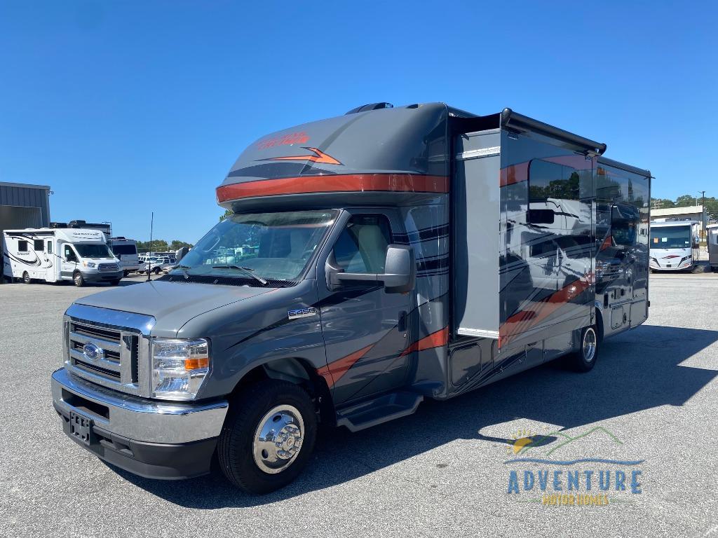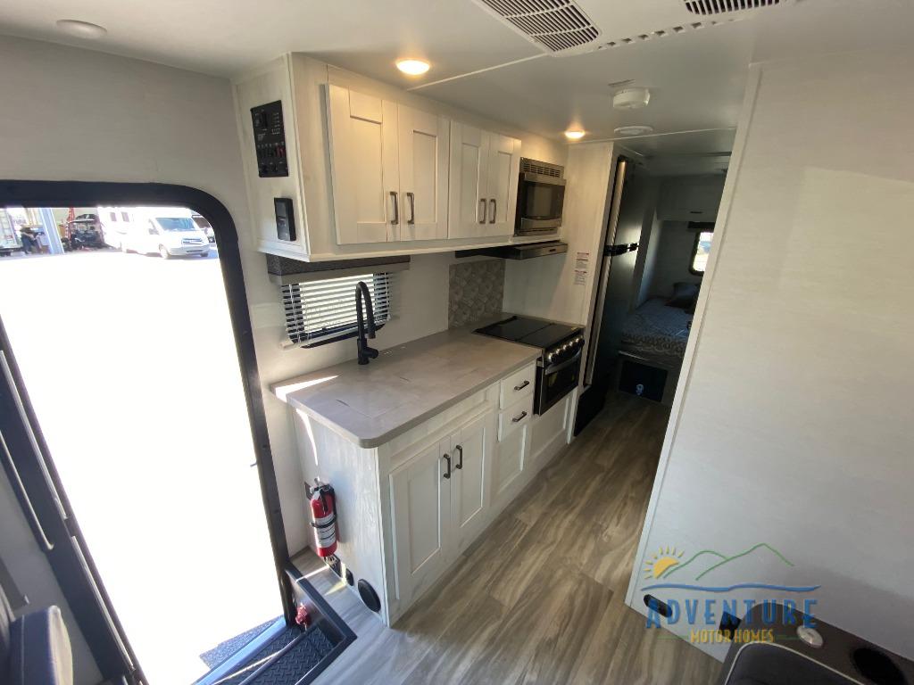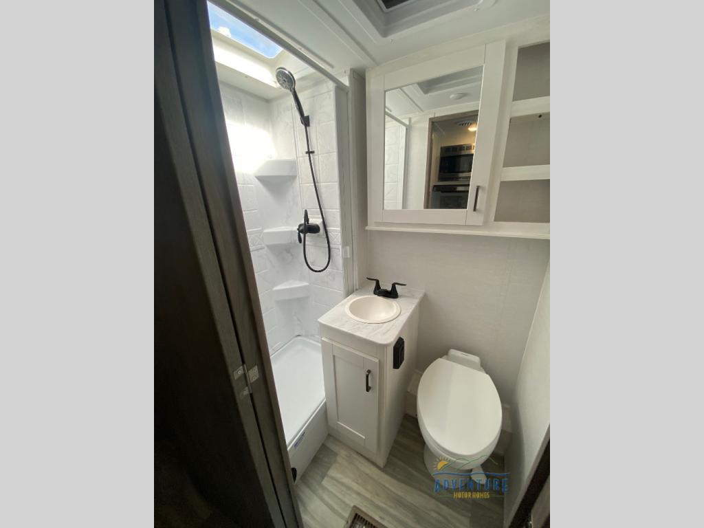 It will surely be a toss-up on which you enjoy the most, the drive while sitting on the 2-way driver and passenger seats, or sleeping in your own private rear bedroom with a walk-around RV queen bed at the campsite! The bedroom also includes dual shirt closets and overhead storage. The side-aisle bathroom includes everything you will need to stay refreshed, and the full kitchen amenities allow you to cook warm meals and store leftovers! You can dine at the Soft Touch jackknife sofa with cupholders and a table, or relax on the barrel chair, as well as relax outside on your camping chairs under the electric awning.