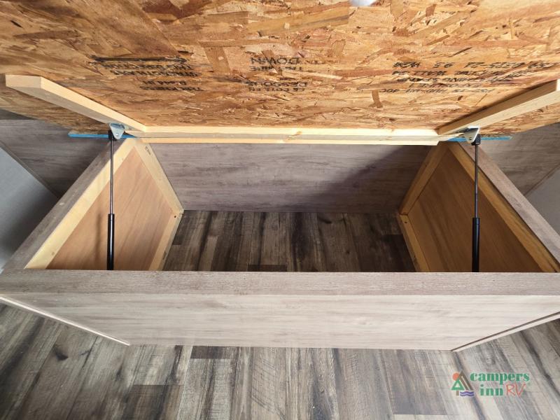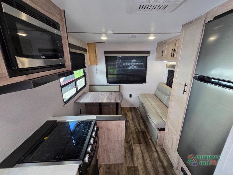 Living Space: Jack knife sofa + booth dinette provide daytime seating