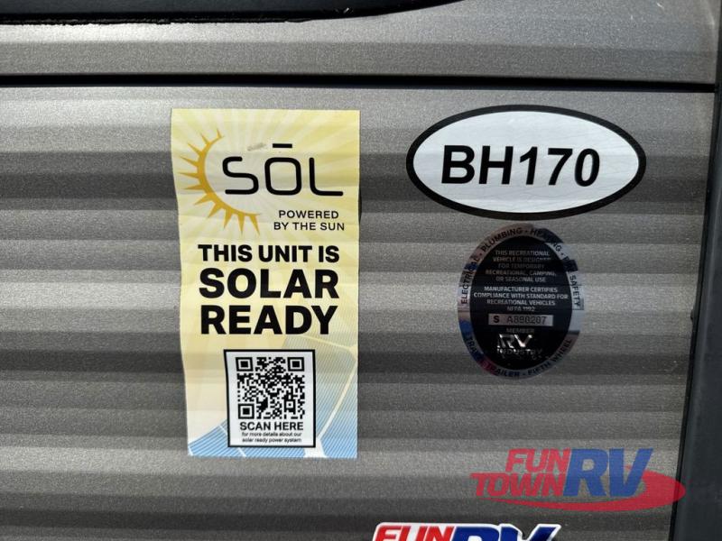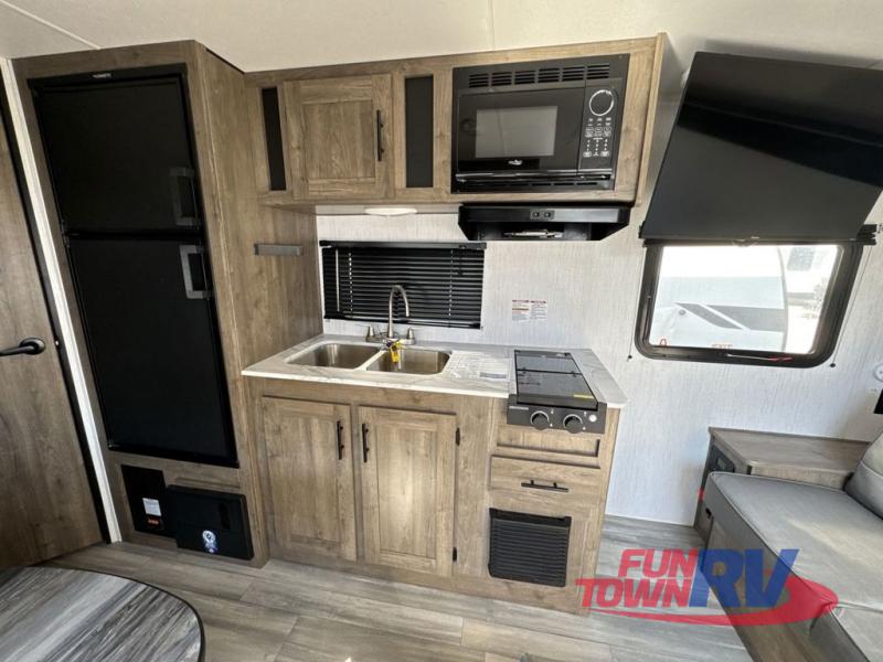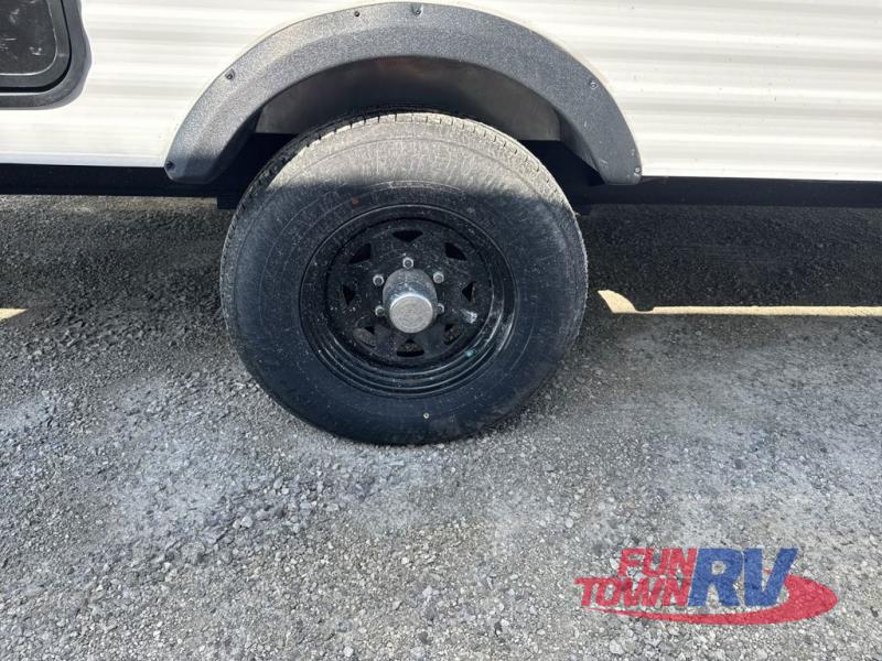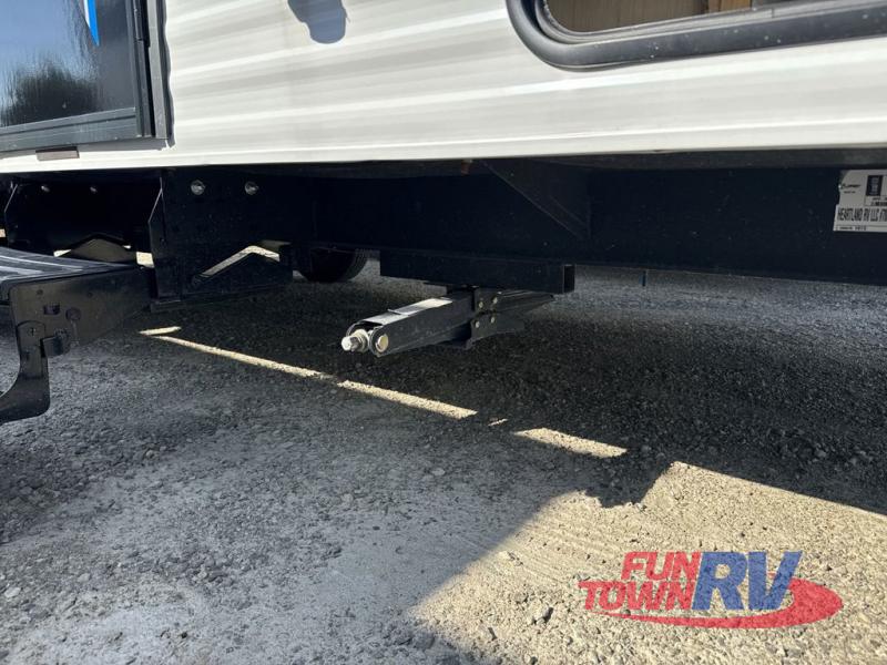 With any Pioneer travel trailer by Heartland, there is a hybrid aluminum front profile with an aerodynamic radius front cage structure for better wind and water deflection, adding strength and reducing tongue weight. The E-Z lube axles help provide smooth towing and the electric awning with LED lights will extend your outdoor living space. Since each model is carpet-free, you can easily clean up after a weekend at the lake, and the extra large crossflow windows allow fresh air to move through your trailer. There are also ball bearing drawer guides and a residential style (50/50) sink in the kitchen, a power vent in the bath, plus an innerspring mattress and TV hookups in the bedroom for added convenience.