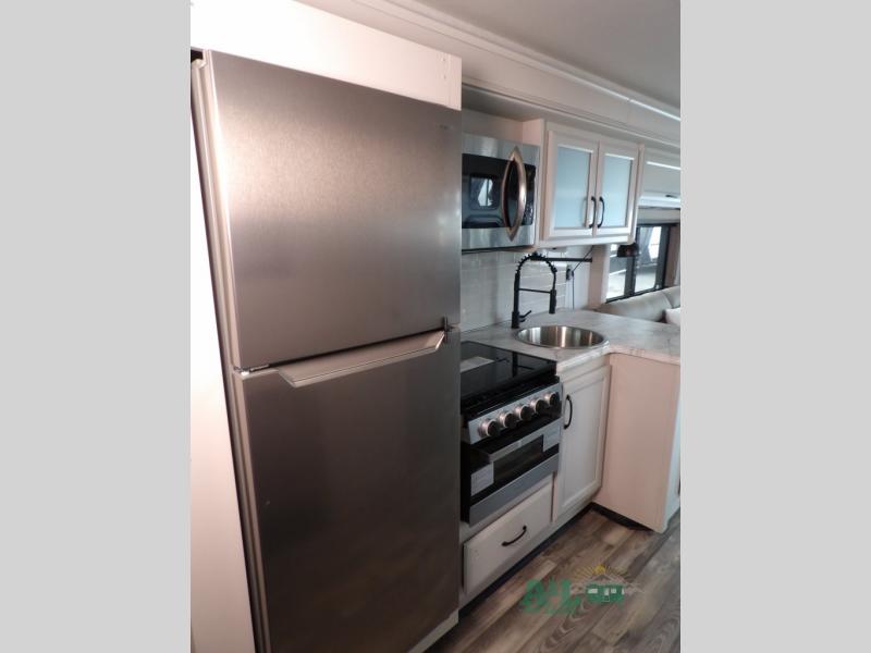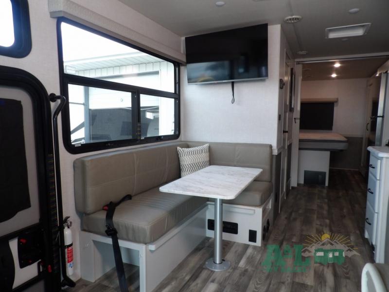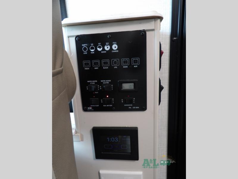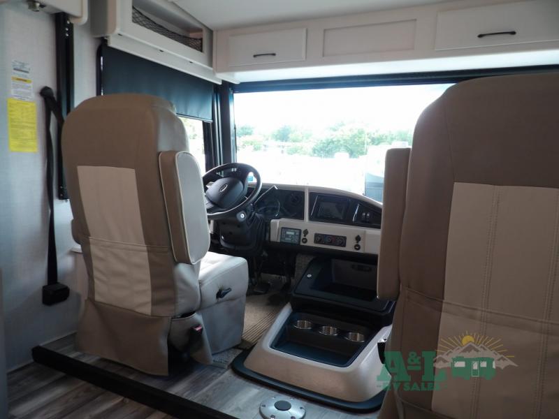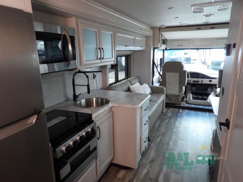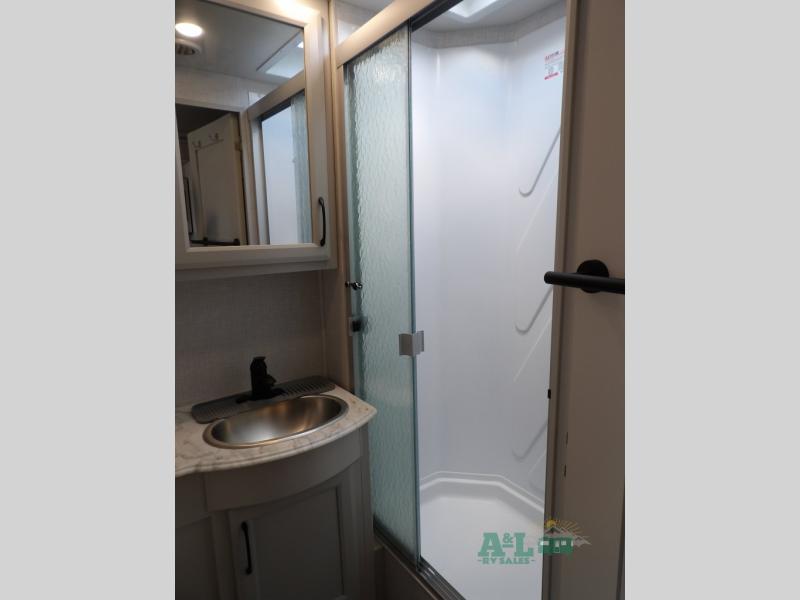 Take the grandkids or a few friends on a road trip of a lifetime with this motorhome! The Hide-A-Loft drop down electric bed is big enough for two to sleep on and the jackknife sofa can transform into a sleeping space too. There is even a rear private bedroom with a Serenity Series 72" x 75" king bed across from a wardrobe and a dresser with a LED TV. The chef can prepare their best meals either inside with the three burner cooktop or breathe in some fresh air while cooking at the exterior kitchenette. You can even watch the big game outside with the exterior entertainment center with a LED TV. Enjoy your meals at the L-shaped dinette with an LED TV next to it and freshen up in the full bathroom with the 34" x 22" shower with a skylight above for natural lighting!
