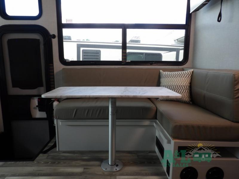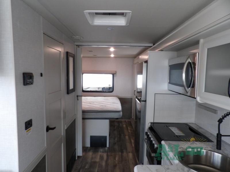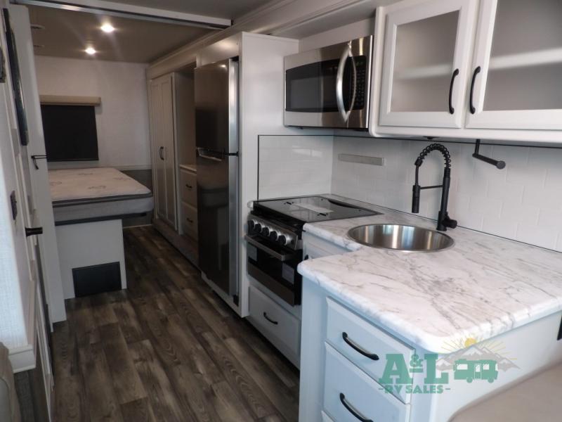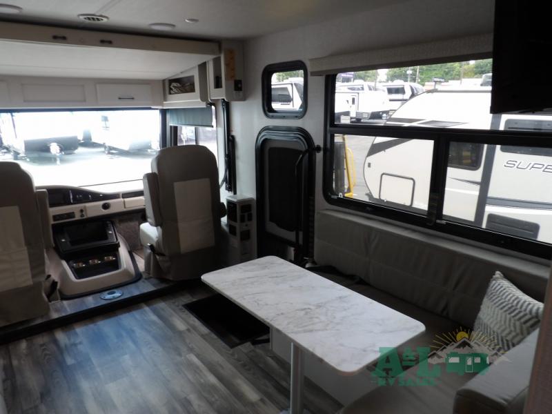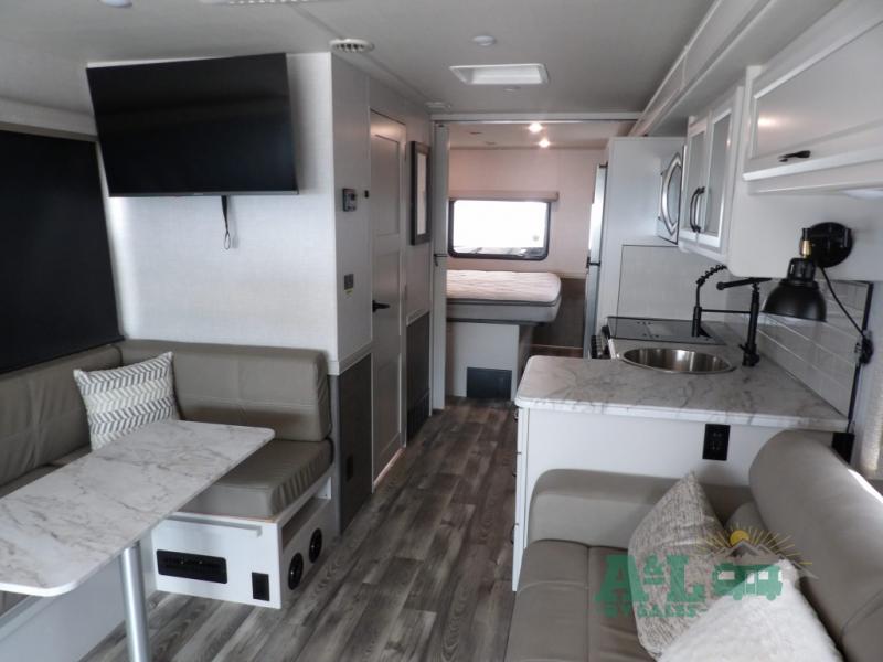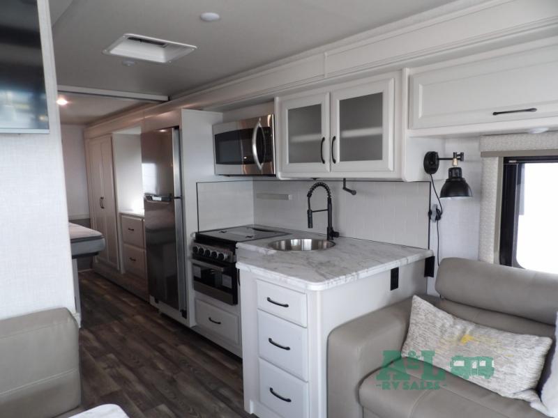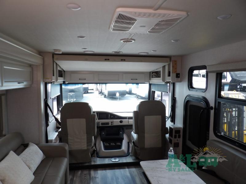 Take the grandkids or a few friends on a road trip of a lifetime with this motorhome! The Hide-A-Loft drop down electric bed is big enough for two to sleep on and the jackknife sofa can transform into a sleeping space too. There is even a rear private bedroom with a Serenity Series 72" x 75" king bed across from a wardrobe and a dresser with a LED TV. The chef can prepare their best meals either inside with the three burner cooktop or breathe in some fresh air while cooking at the exterior kitchenette. You can even watch the big game outside with the exterior entertainment center with a LED TV. Enjoy your meals at the L-shaped dinette with an LED TV next to it and freshen up in the full bathroom with the 34" x 22" shower with a skylight above for natural lighting!