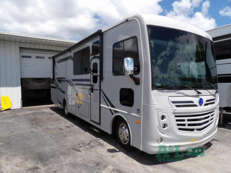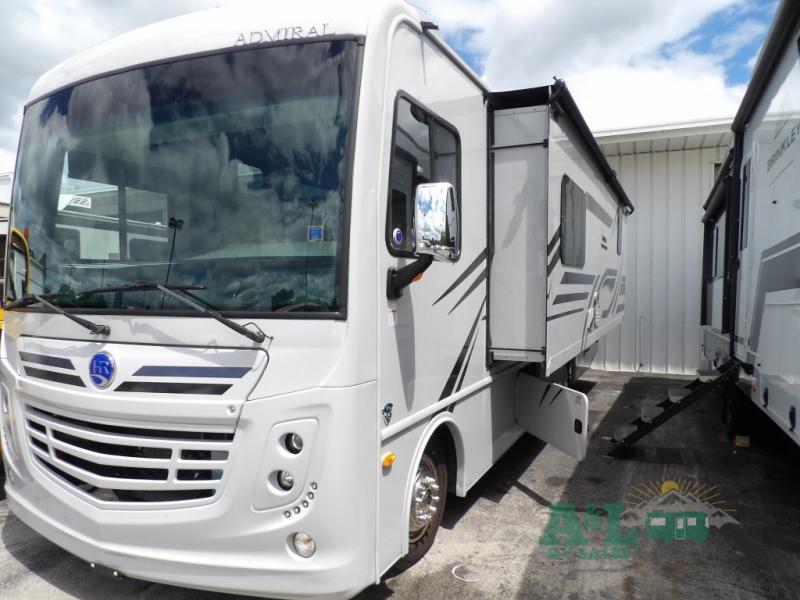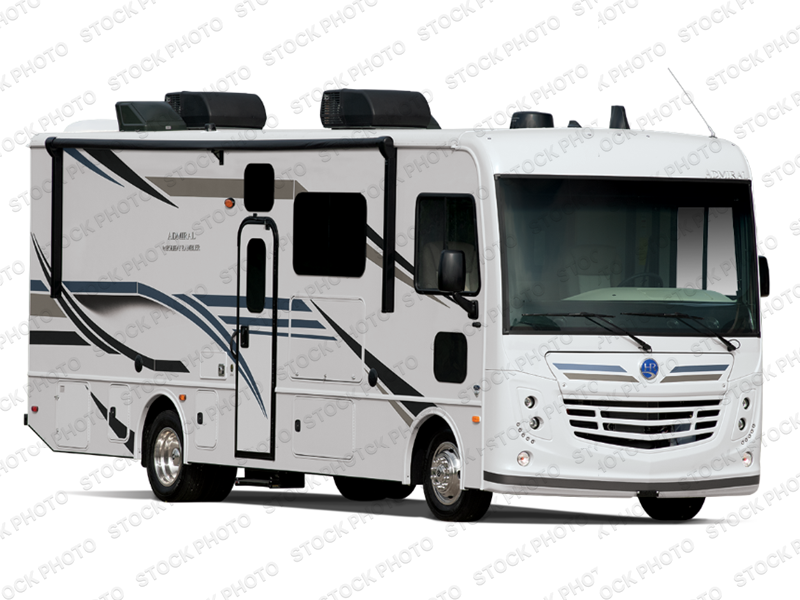 Enter the world of luxury travel with any one of these Holiday Rambler Admiral Class A gas motorhomes! Settle in with the four point fully automatic hydraulic leveling jacks and store all of your gear in the exterior pass-through storage. An automotive, bonded one-piece windshield gives you a clear view of your surroundings, an aerodynamic front cap with hood creates better gas mileage, and automotive headlights help you to see clearly at night. The all new electronic instrument panel lets you control parts of your unit at the touch of a finger. A ducted A/C system will keep you cool on those hot summer days and the power ceiling vents will rid your unit of any unwanted air. You will have plenty of entertainment with the exterior LED TV, the interior TV, and the Sony stereo with AM/FM/Bluetooth. Come find your perfect model today!