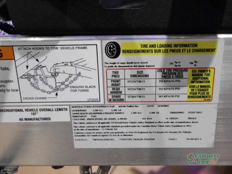 The Sol Dawn offers a dry weight between 2,650 and 2,731 lbs., making it easy to tow with many midsize SUVs. With a tongue weight of 280–310 lbs. and a carrying capacity up to 910 lbs., it’s a compact trailer that still lets you bring everything you need.
