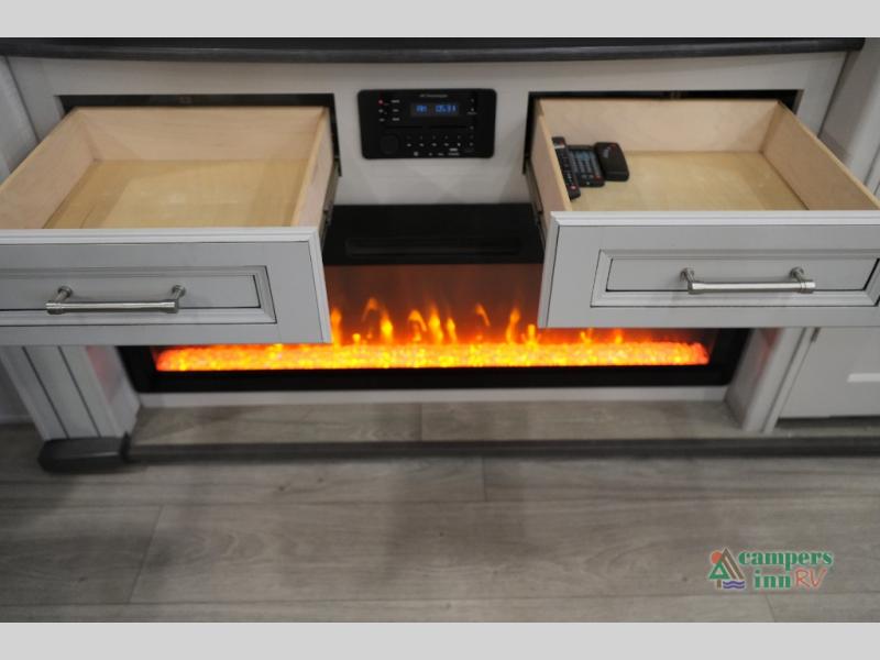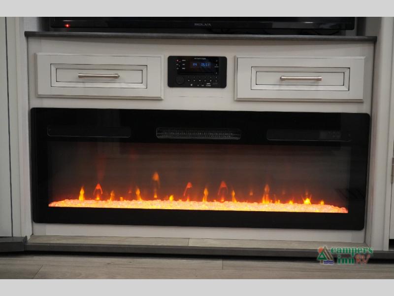 Cozy Fireplace – Adds warmth and ambiance beneath the entertainment center.