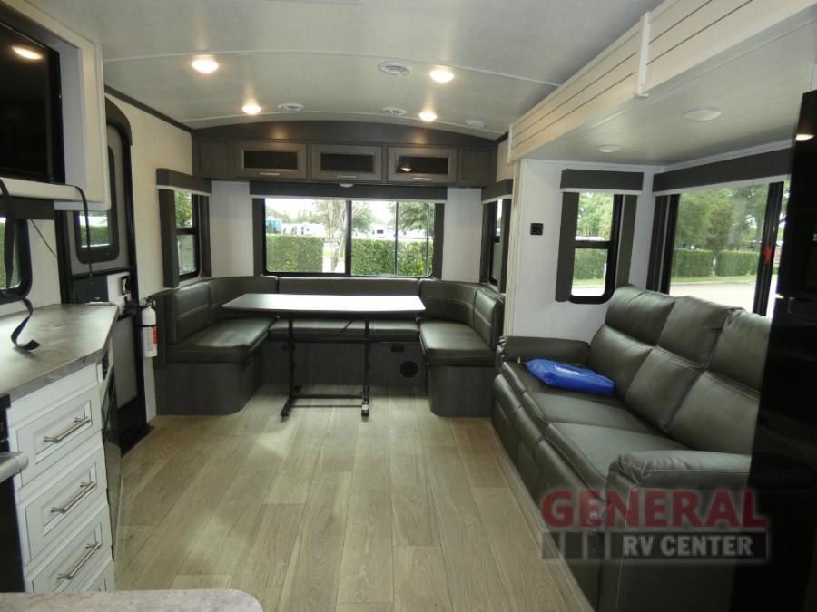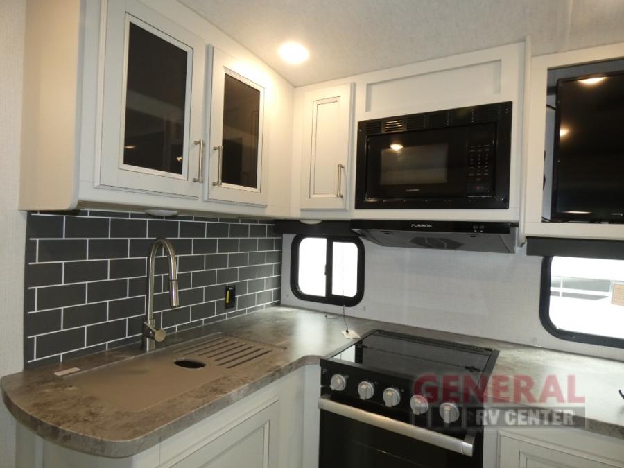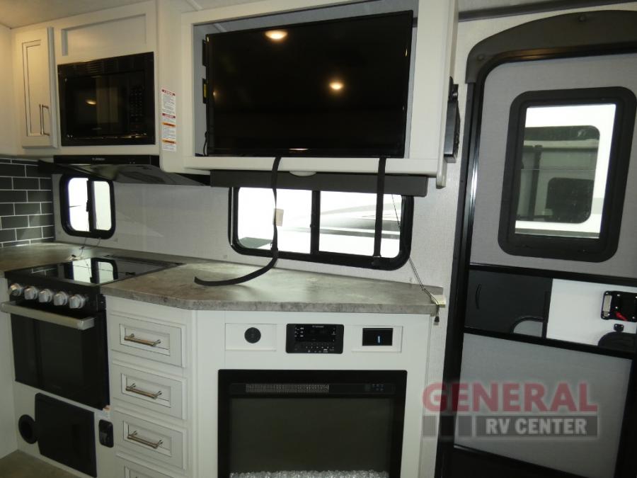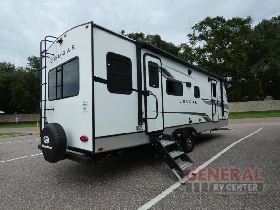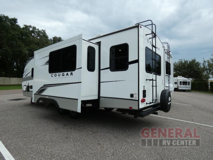 The Keystone Cougar Half-Ton fifth wheel and travel trailers are known as one of America's favorites for a reason! Some of those reasons are the exclusive features that come from Keystone, like the Winegard Air 360+ omni-directional rooftop antenna, the in-floor heating ducts, and the Hyper Deck flooring. The Cougar Half-Ton has a Climate Guard protection package to keep you safe during inclement weather, along with two roof attic vents, PEX plumbing and more. Use the 21" Furrion range with Piezo ignition to create all of those familiar meals from home, and enjoy endless hot showers with the Girard tankless on-demand water heater!